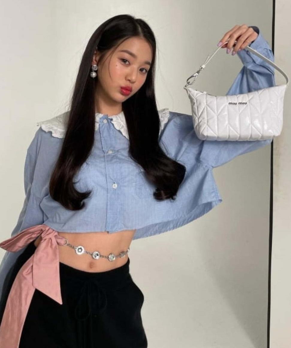 Trước đó, Chaeryeong (ITZY) cũng từng đeo lắc eo trong bộ ảnh quảng bá album mới Not Shy. Tuy nhiên, Chaeryeong lại đeo cả vòng cổ dài có kiểu dáng giống với belly chain nên nhìn hơi rối mắt.