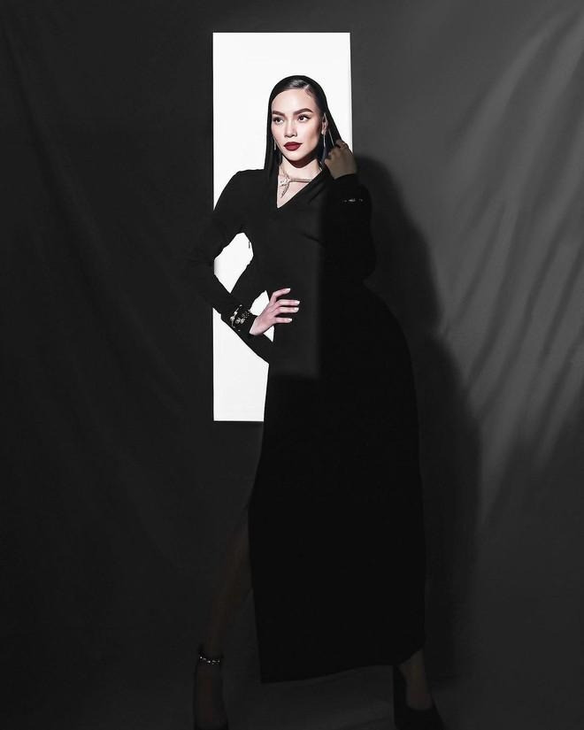 Trong khi netizen cứ ngỡ Hồ Ngọc Hà tiếp tục “trưng trổ” những set đồ đa màu sắc, giúp cô luôn nổi bật dù đứng cạnh các mỹ nhân khác thì The New Mentor càng lên sóng, Hồ Ngọc Hà lại càng tiết chế bảng màu trên trang phục của mình. Cô đặc biệt ưa thích màu đen, nhiều lần diện cả cây đen từ đầu đến chân hoặc nếu không cũng là quần áo đơn sắc với tông màu trang nhã như be, ghi.