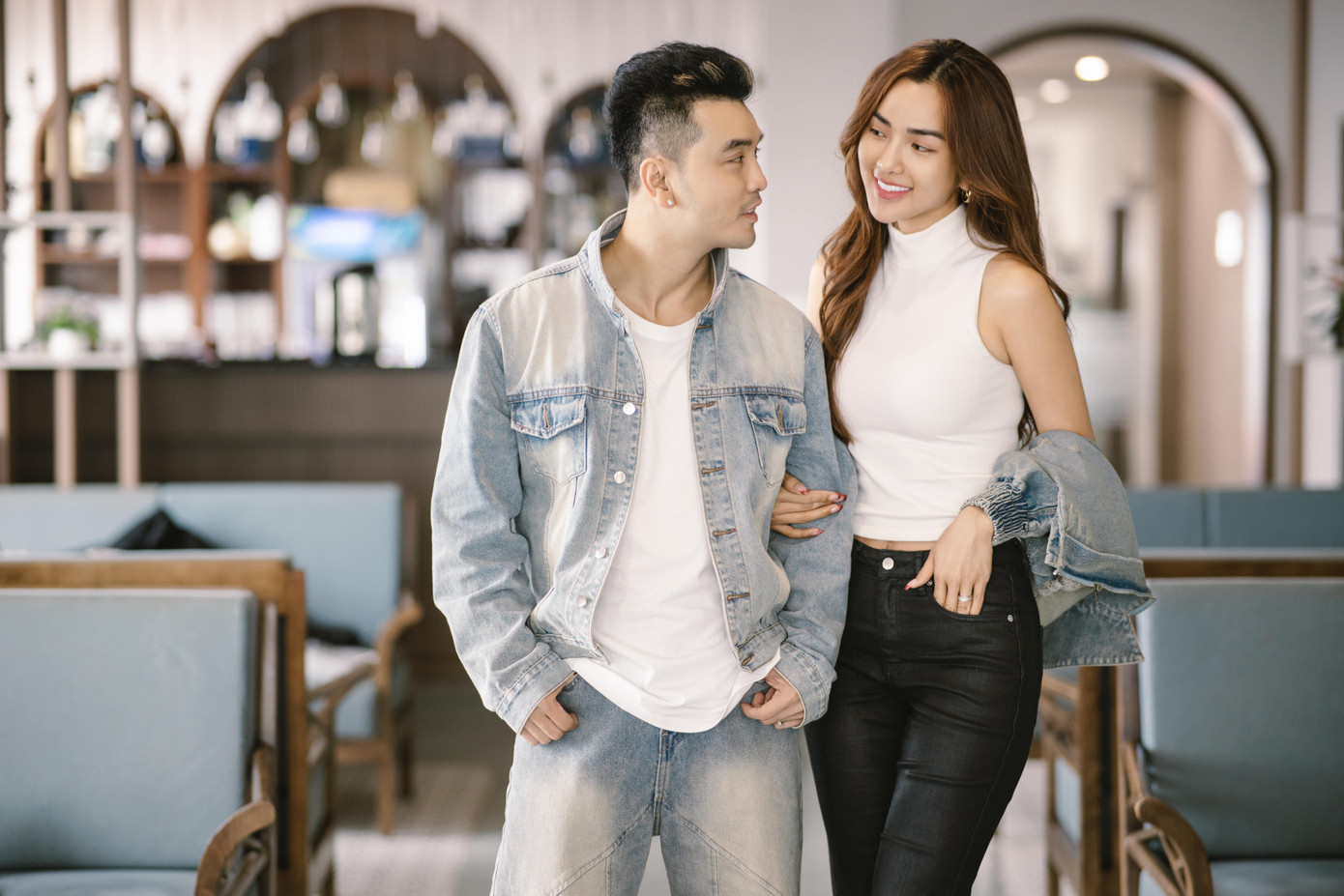 Ngoài giọng ca của ông xã, Kim Cương cũng xuất hiện với vai trò diễn viên. Từng là người mẫu xuất hiện trên những sàn diễn lớn nhỏ, không khó để Kim Cương tự tin thể hiện những phân cảnh xuất sắc trước ống kính. Có lẽ vì vậy mà Ưng Hoàng Phúc hết lần này đến lần khác đầu tư mời cô tham gia diễn xuất trong MV của mình.