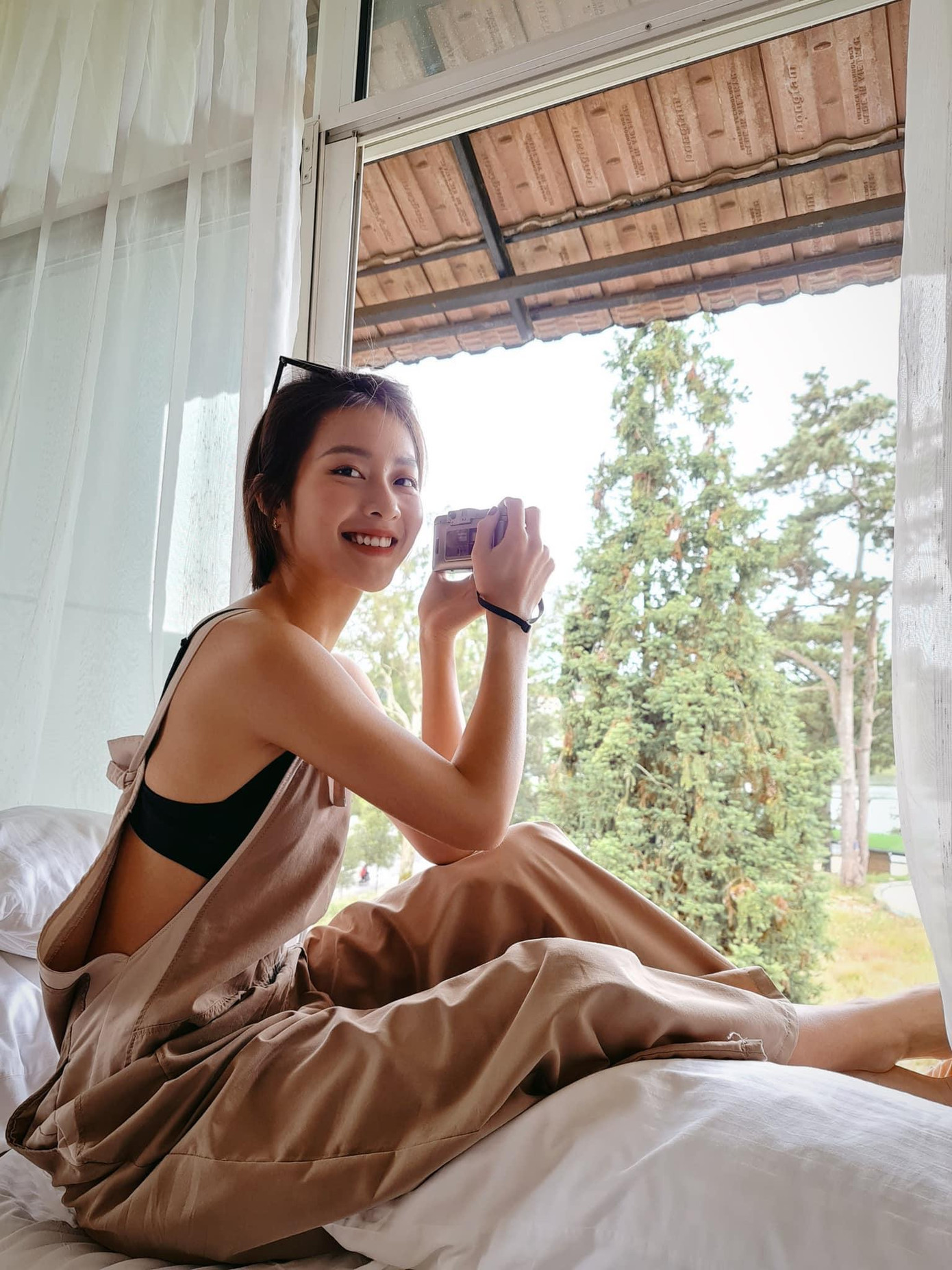 Diện quần yếm và bra thể thao kín đáo là cách nhiều idol K-Pop từng mặc và Khả Ngân cũng áp dụng để tạo thành style trẻ trung mà không bị hở hang.