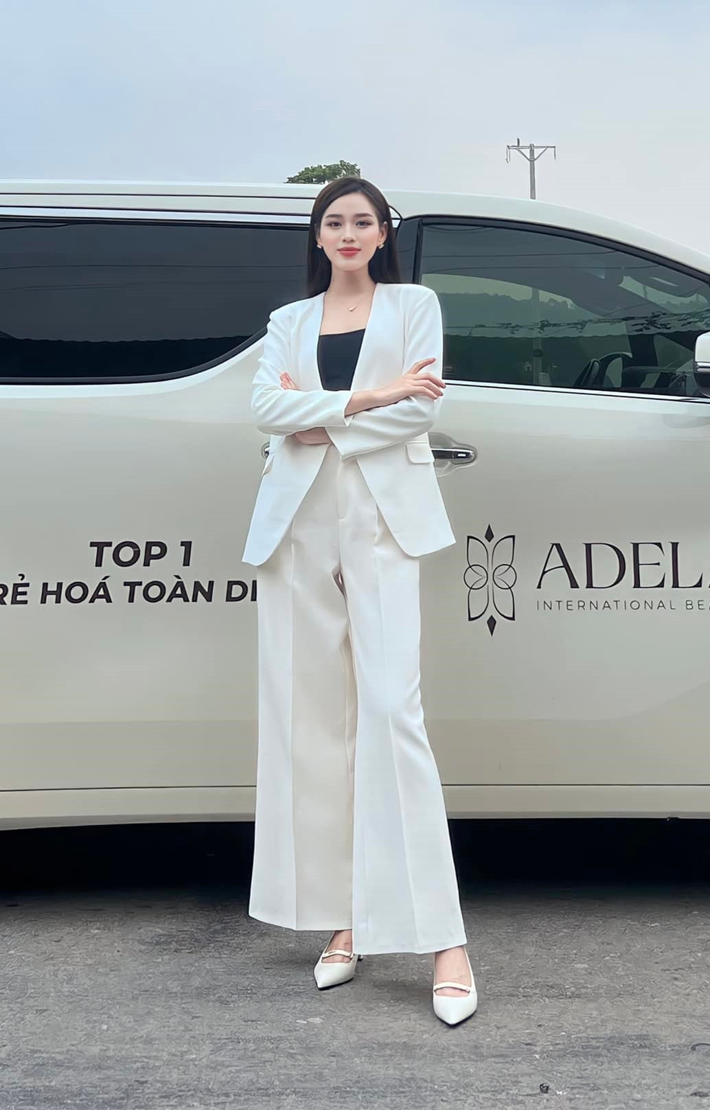 Thời gian gần đây, Đỗ Thị Hà mới nhận chức giám đốc điều hành của một trung tâm chăm sóc sắc đẹp nên phong cách ăn mặc cũng chuyển sang sang trọng đúng chuẩn nữ tổng tài. Chính vì thế mà nàng hậu rất chuộng mặc blazer vừa thanh lịch vừa thời thượng.