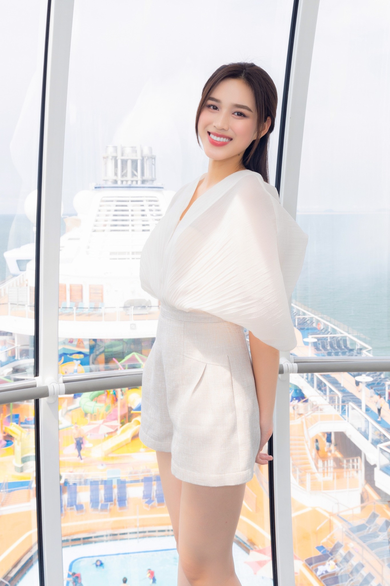 Trong chuyến du lịch trên du thuyền 5 sao vừa qua, nàng hậu đã liên tục kết hợp mẫu áo blazer này với váy dài hoặc áo hai dây và chân váy jeans.