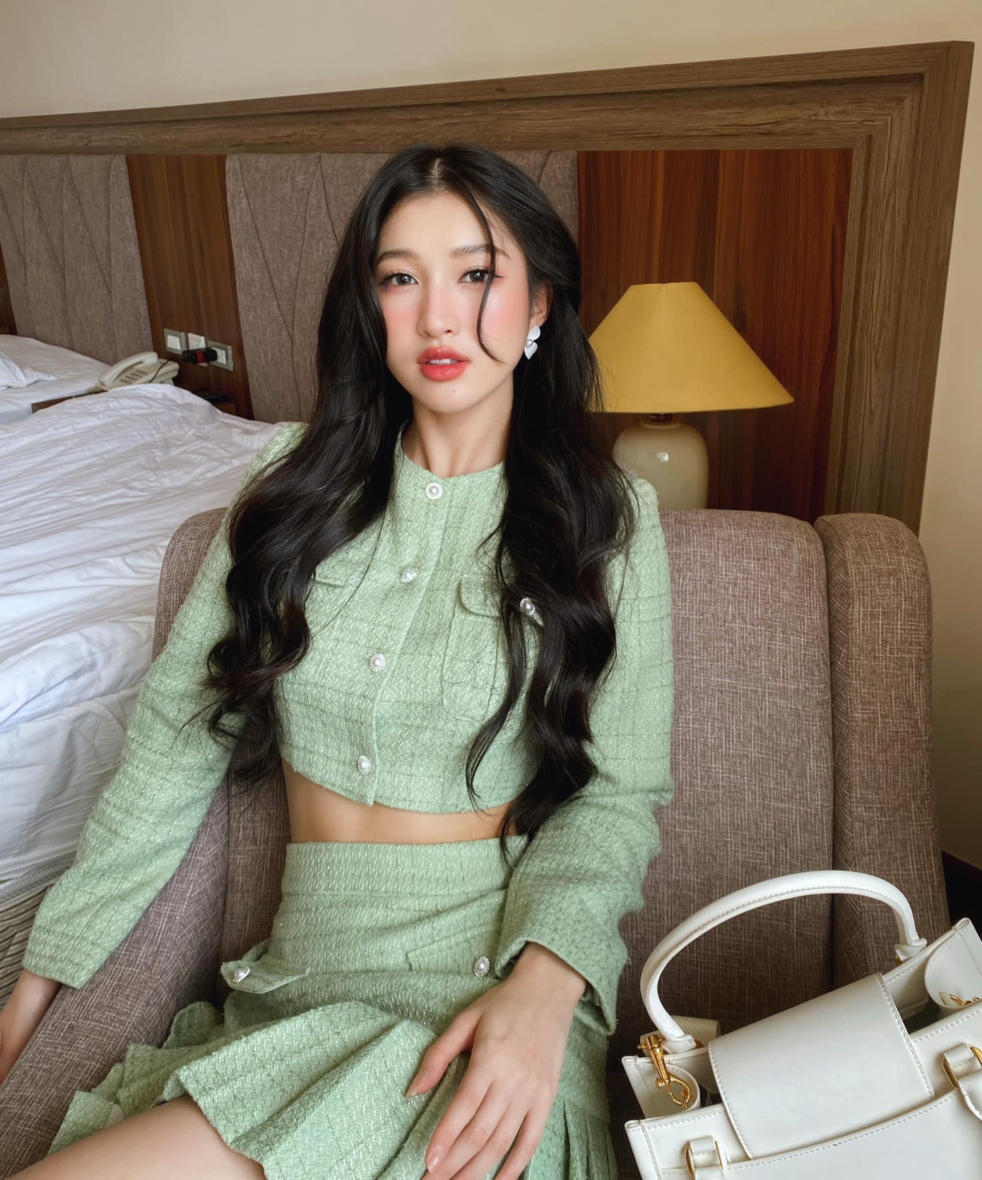 Thời gian gần đây, Phương Nhi rất chuộng mặc đồ khoe eo. Khi đi dự sự kiện, cô thường chọn set đồ kết hợp áo lửng và chân váy xòe, vừa trẻ trung hợp với phong cách nàng hậu, vừa khoe khéo được vòng eo thắt đáy lưng ong nhỏ xíu.