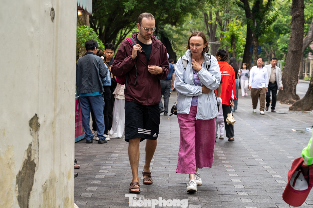 Các du khách cũng cảm nhận rõ không khí se lạnh đặc trưng của Thủ đô trong ngày hôm nay.