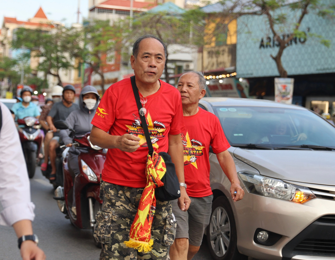 | Tuy nhiên, tình yêu bóng đá và niềm vui cổ vũ đội tuyển vẫn bùng cháy, đưa đoàn người kéo về cổng sân Lạch Tray. |