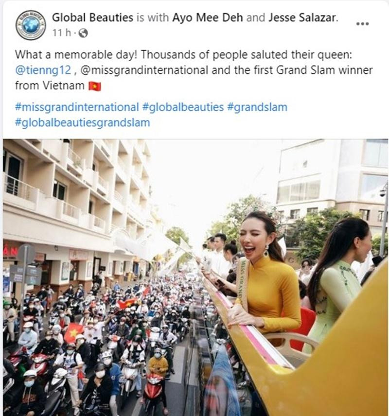 Chuyên trang Global Beauties mới đây liên tiếp đăng tải các hình ảnh Hoa hậu Thùy Tiên về nước và được đón chào nồng nhiệt bởi người hâm mộ.