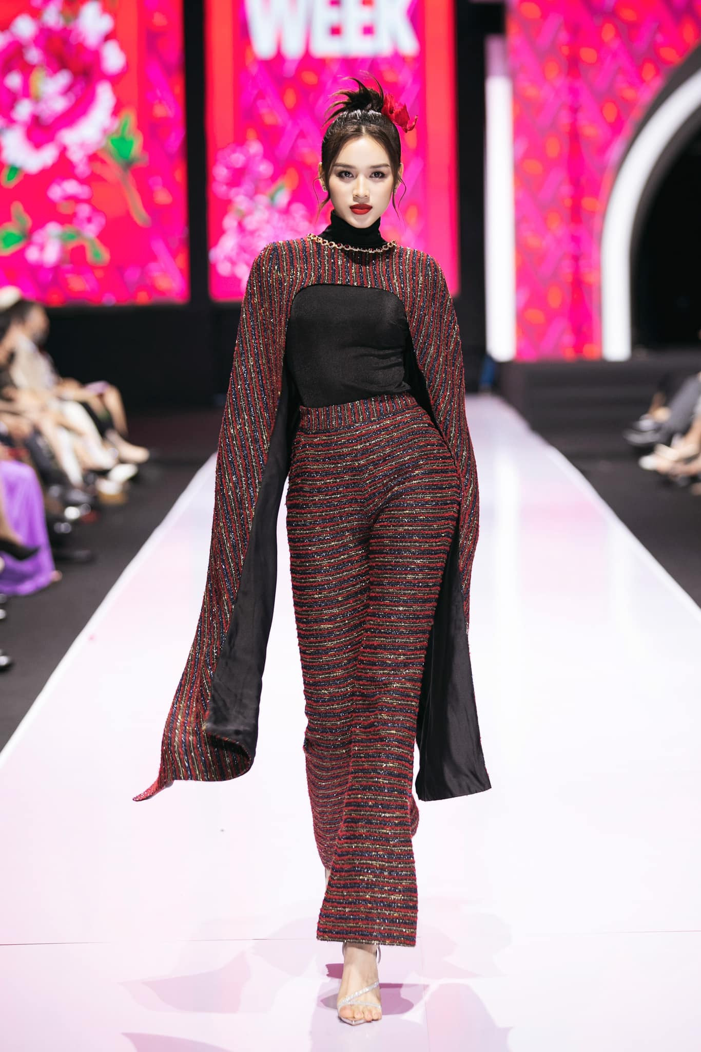 Trên sàn diễn thời trang, Hoa hậu Việt Nam 2020 cũng rất tự tin sải bước với những mẫu quần cạp cao. Chỉ những nàng hậu có chiều cao đáng nể như Đỗ Thị Hà mới có thể “cân đẹp” thiết kế với đường sọc ngang như thế này.
