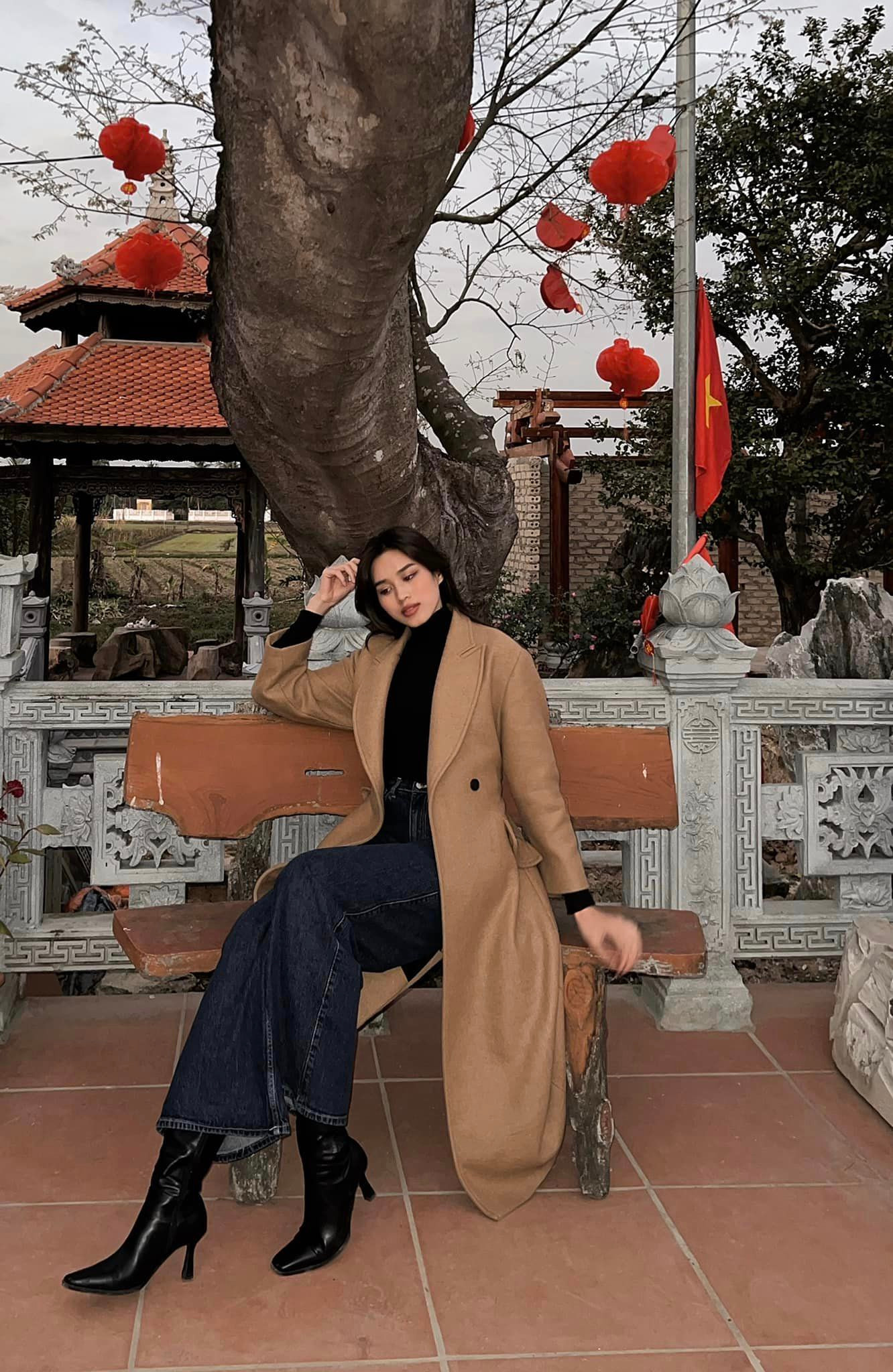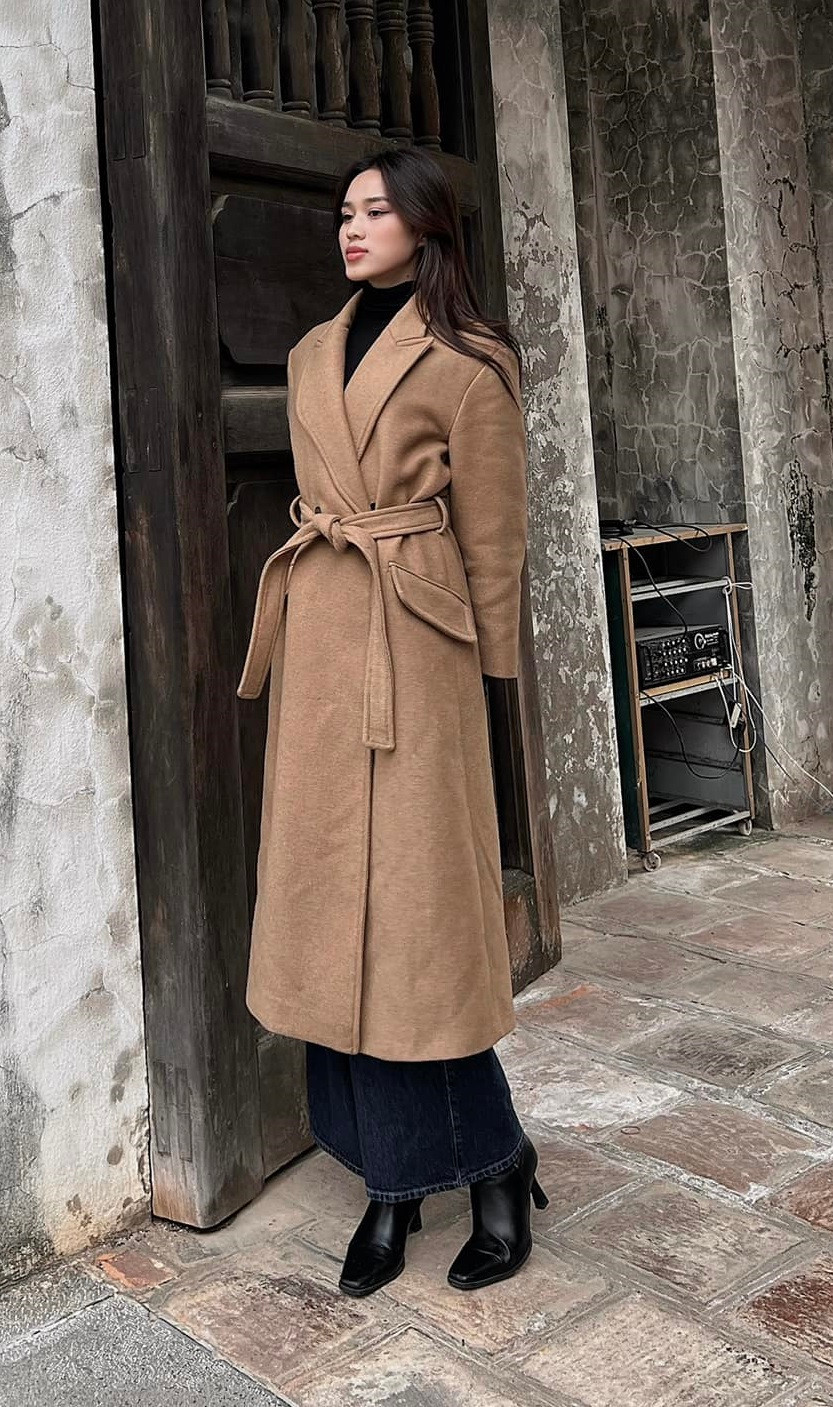Quần đen cũng rất dễ phối đồ. Khi Đỗ Thị Hà diện kèm trendcoat, nhìn nàng hậu vô cùng sành điệu mà vẫn đảm bảo đủ ấm áp trong tiết trời mùa Đông.