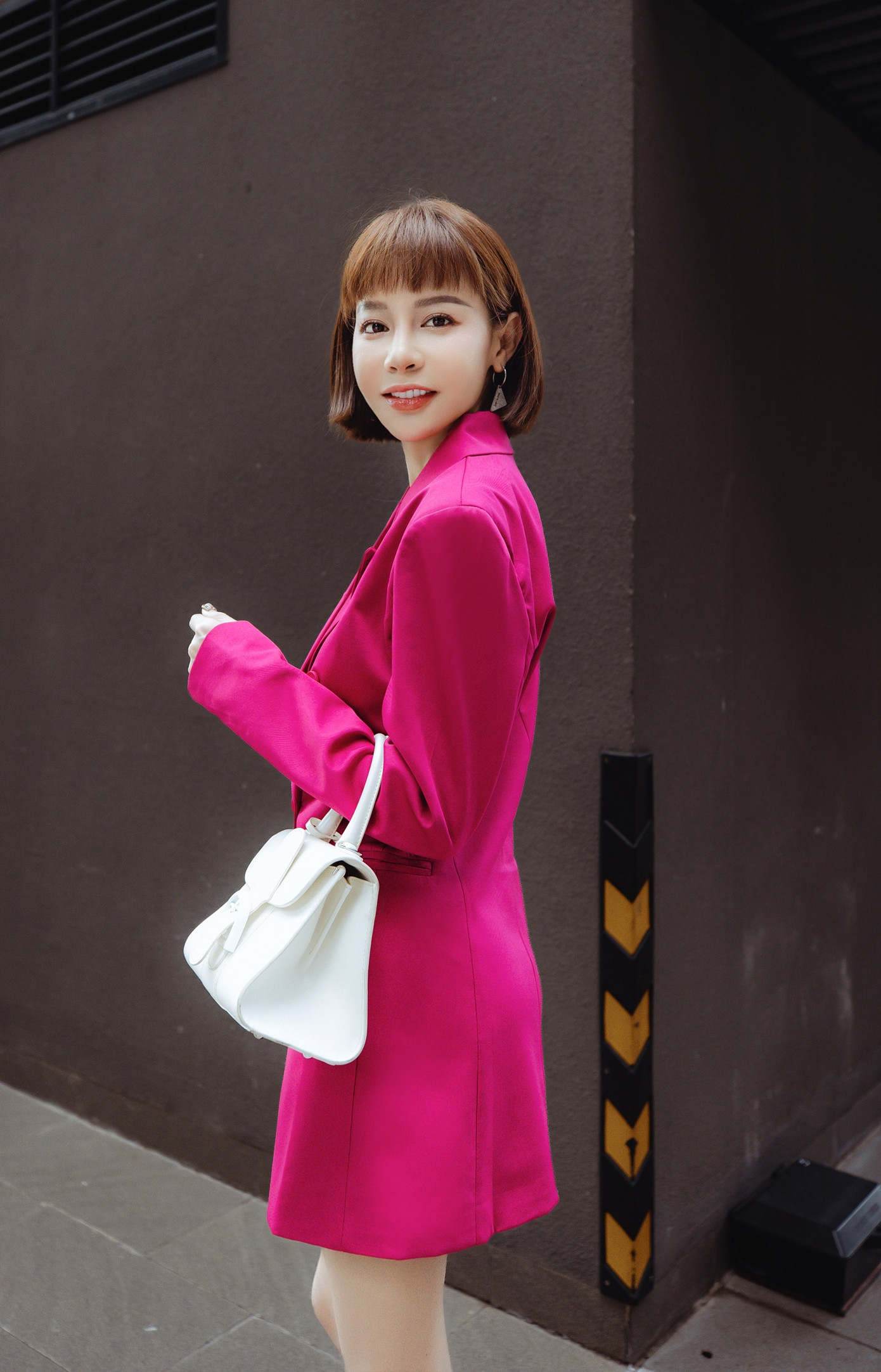 Đến set đồ tông hồng rực rỡ, Hoa hậu Hải Dương gây ấn tượng với cách phối trang phục ton sur ton, áo khoác cùng giày cao gót tông hồng đầy trẻ trung, nhưng vẫn giữ được cá tính riêng.