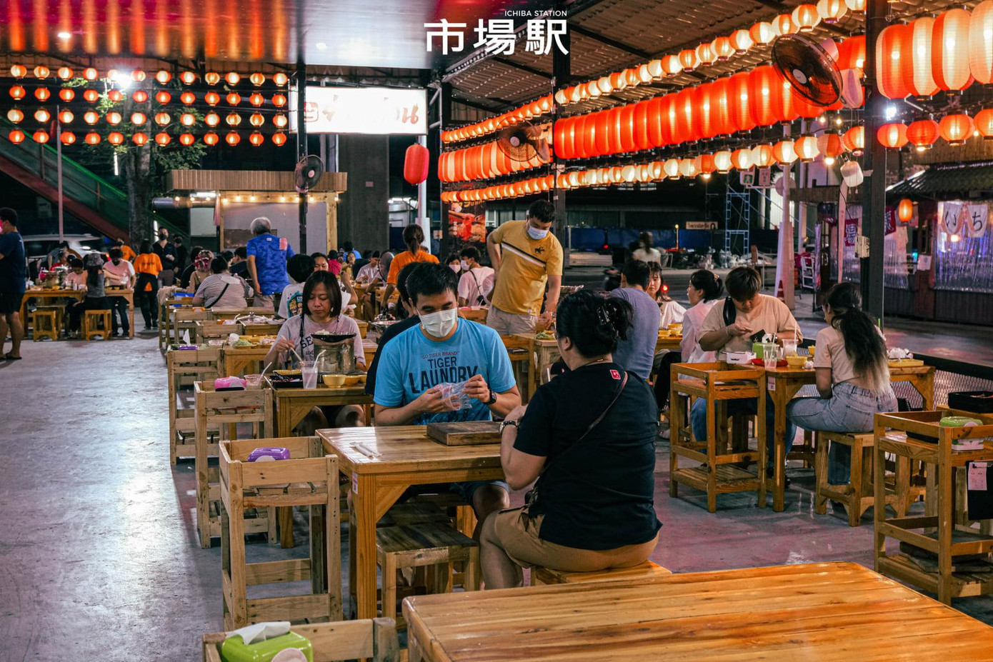 | Hầu hết các khu chợ đêm ở Thái Lan đều dùng bóng đèn huỳnh quang trắng. Tuy nhiên, khu chợ đêm lấy cảm hứng từ Nhật Bản này đã thay thế ánh sáng mang tính biểu tượng sang ánh sáng dịu nhẹ, huyền ảo và bí ẩn của những chiếc đèn lồng đỏ. |