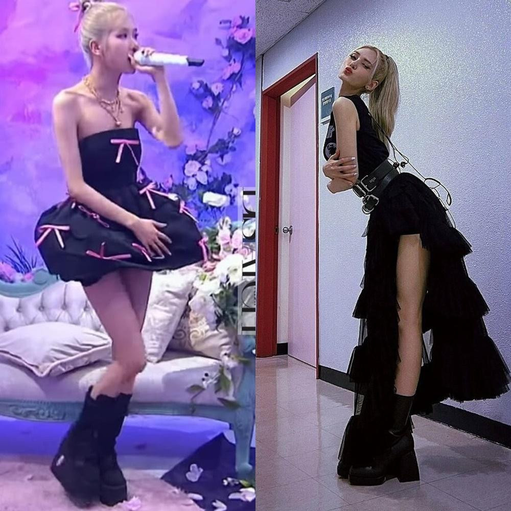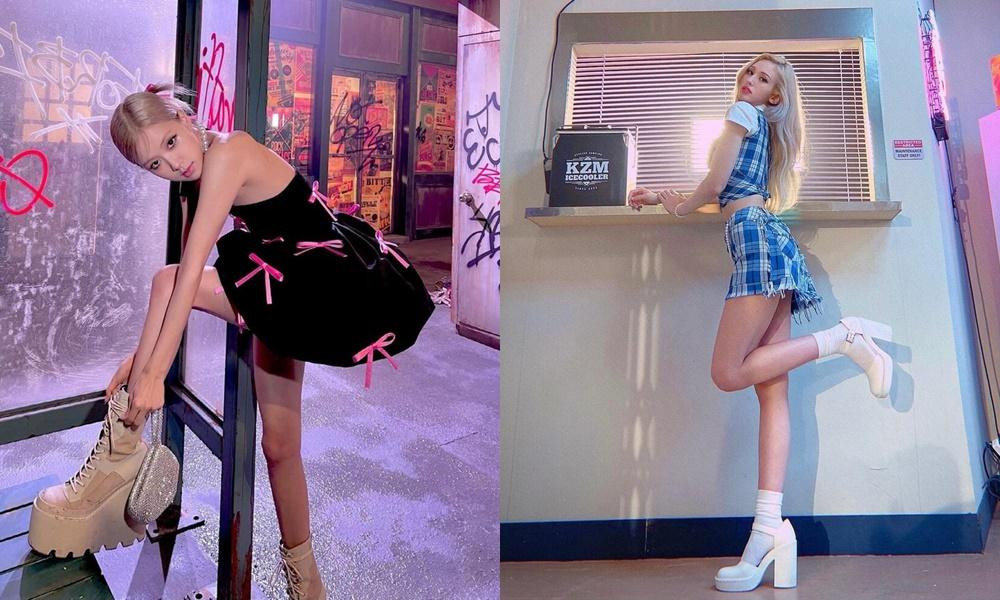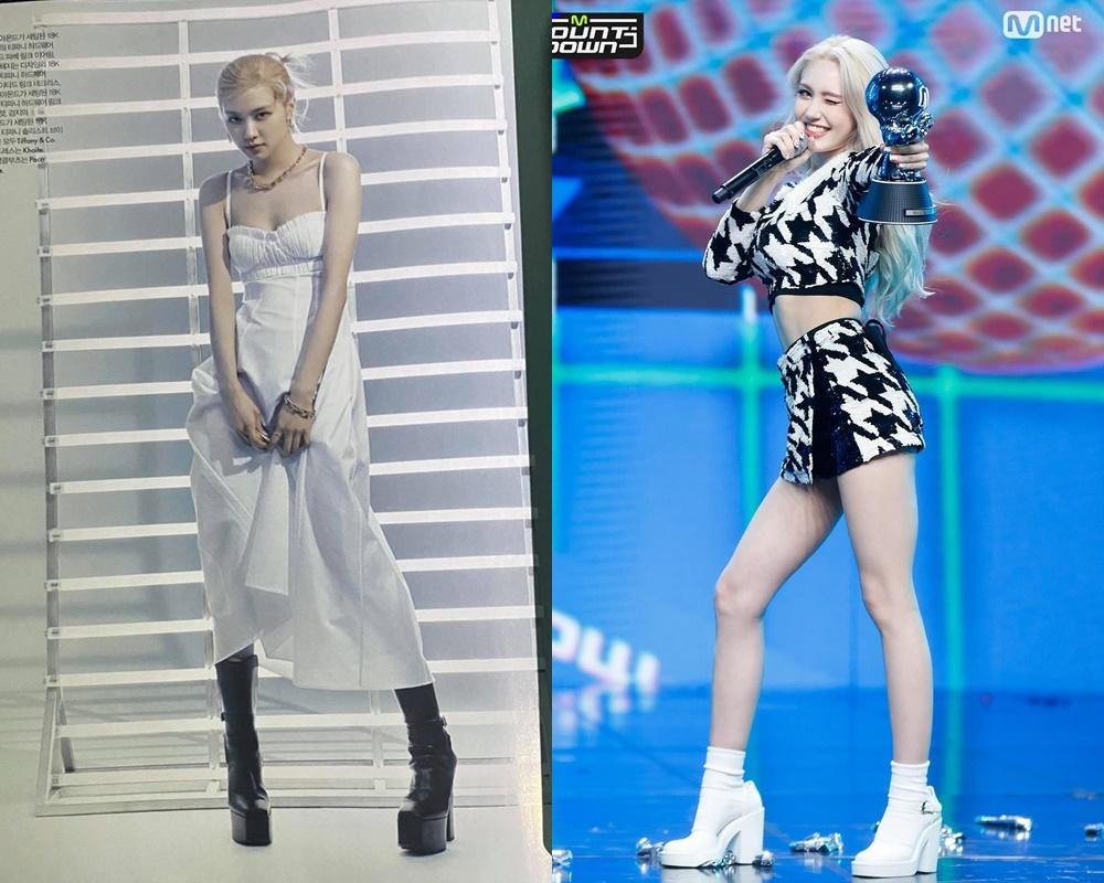 Mới đây, khán giả còn phát hiện cả hai cô gái thường xuyên diện những đôi giày có đế khổng lồ khi biểu diễn. Vì Rosé và Somi có đôi chân nhỏ nhắn nên nhìn càng tương phản với những kiểu giày cỡ lớn như thế này.