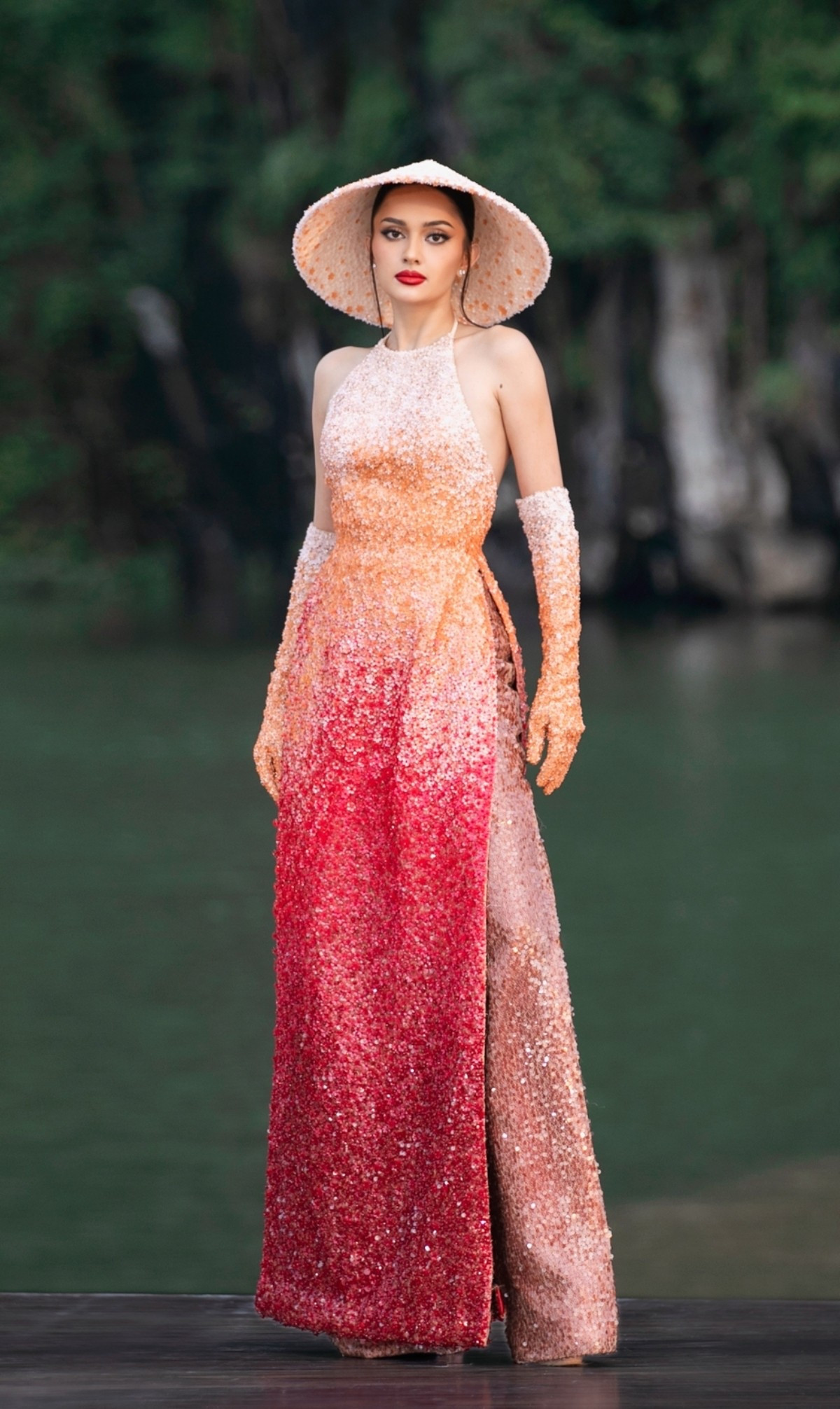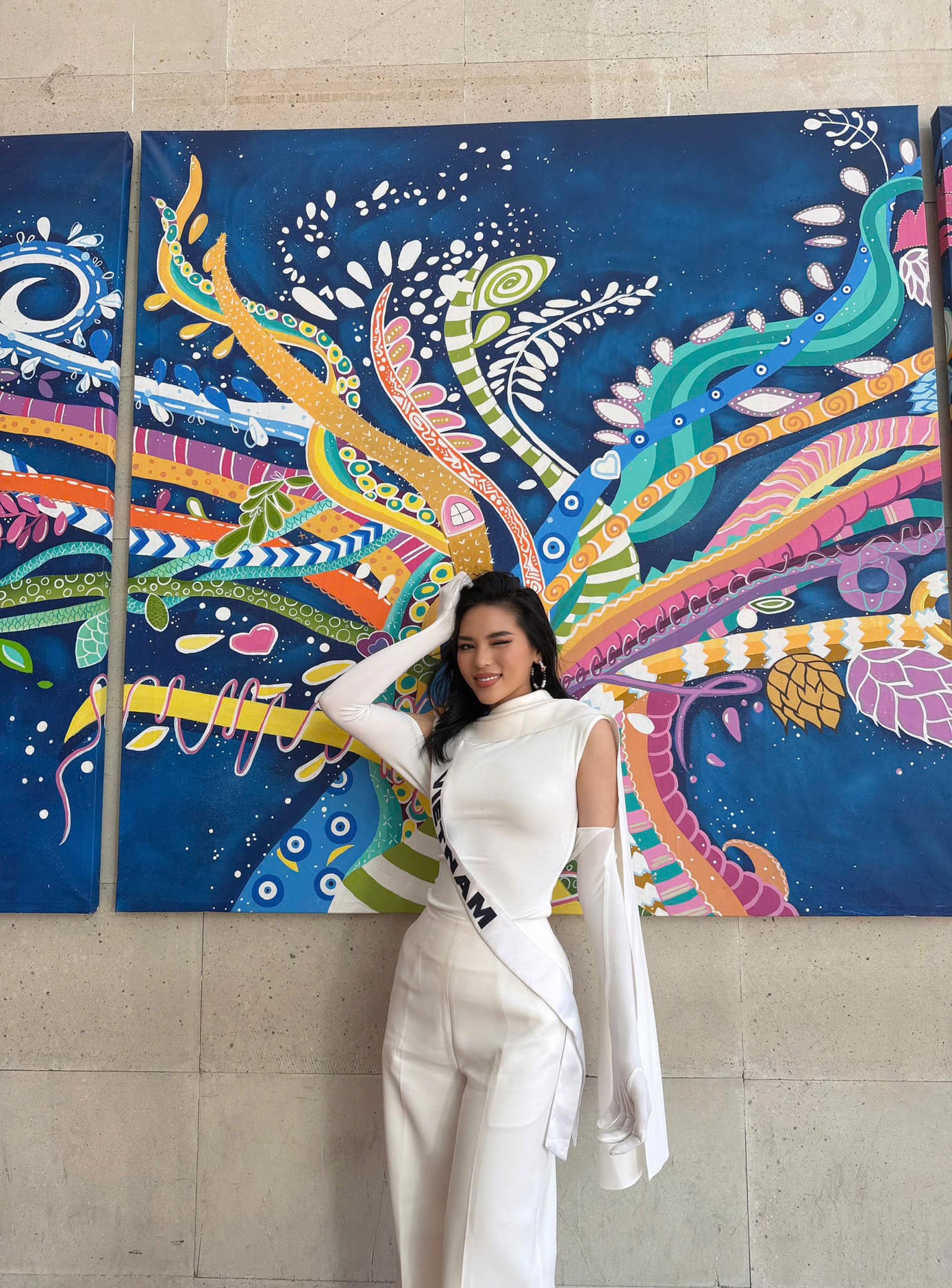 HHTO - Hoa hậu Kỳ Duyên lần thứ 2 mặc áo dài tại Miss Universe 2024, người đẹp chọn mẫu áo dài từng được Hoa hậu Khánh Vân và Miss Cosmo Philippines mặc trước đó.