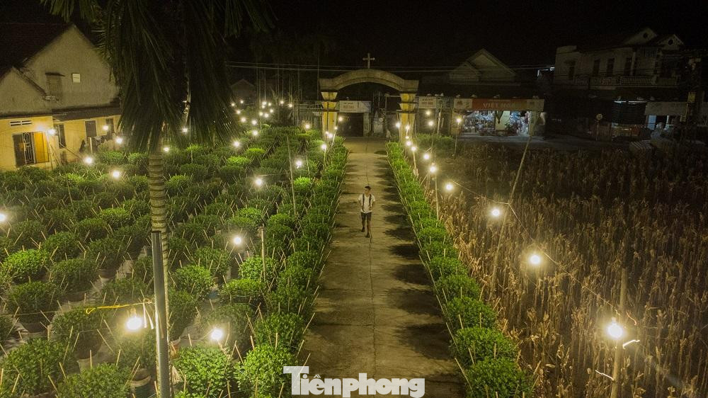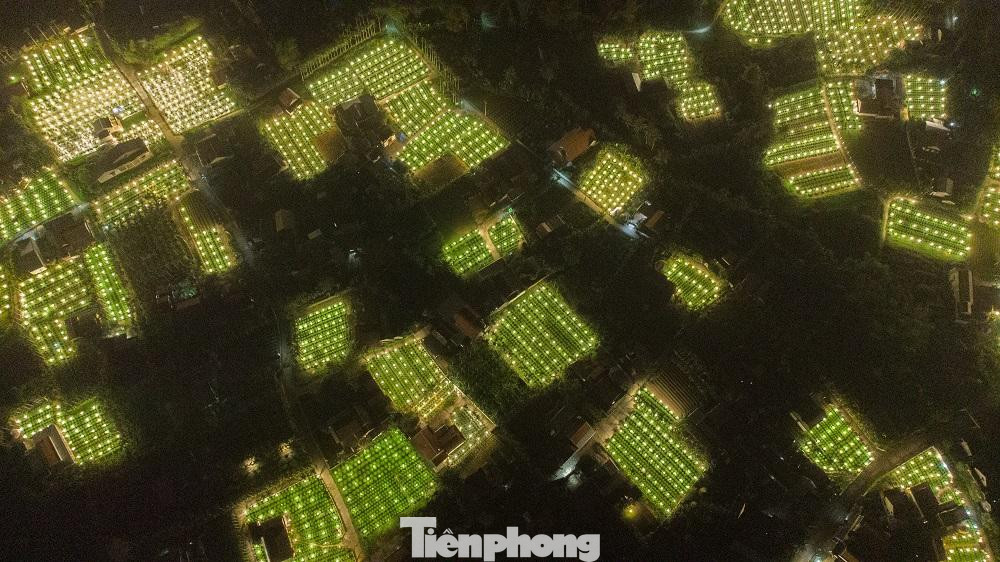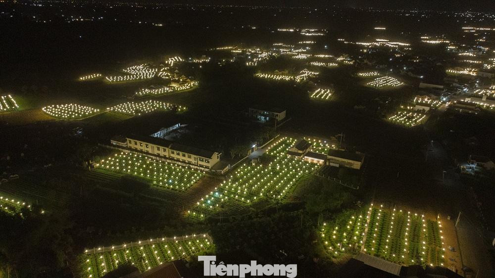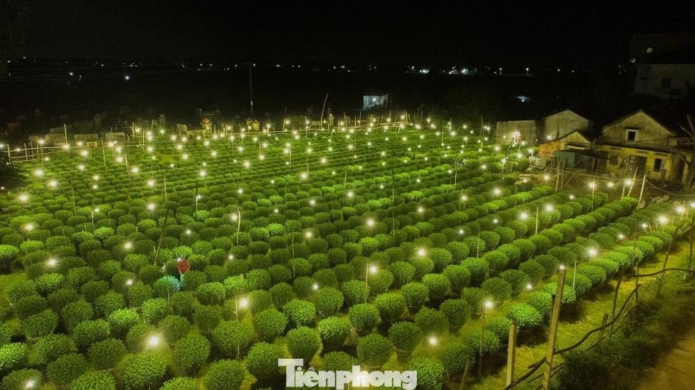 TPO - Đêm về, hàng trăm nghìn chậu hoa cúc ở “thủ phủ” hoa xã Nghĩa Mỹ, Nghĩa Hiệp (huyện Tư Nghĩa, tỉnh Quảng Ngãi) được đánh thức bởi ánh sáng của hàng nghìn bóng đèn điện. Đây là một kĩ thuật phổ biến của người trồng hoa, nhằm biến đêm thành ngày để hoa nở đúng thời điểm Tết Nguyên đán.