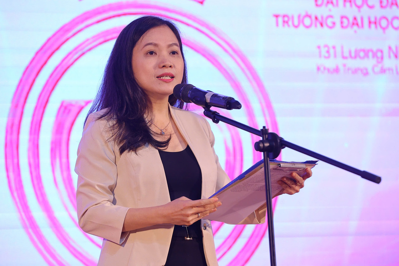 Chia sẻ tại sự kiện, bà Huỳnh Thị Mai Kha - Phó Hiệu trưởng Trường Đại học Ngoại ngữ - Đại học Đà Nẵng - nhấn mạnh cuộc thi Hoa hậu Việt Nam do Báo Tiền Phong tổ chức không chỉ là một sân chơi tôn vinh sắc đẹp mà còn là nơi thể hiện tài năng, trí tuệ của phụ nữ Việt Nam.