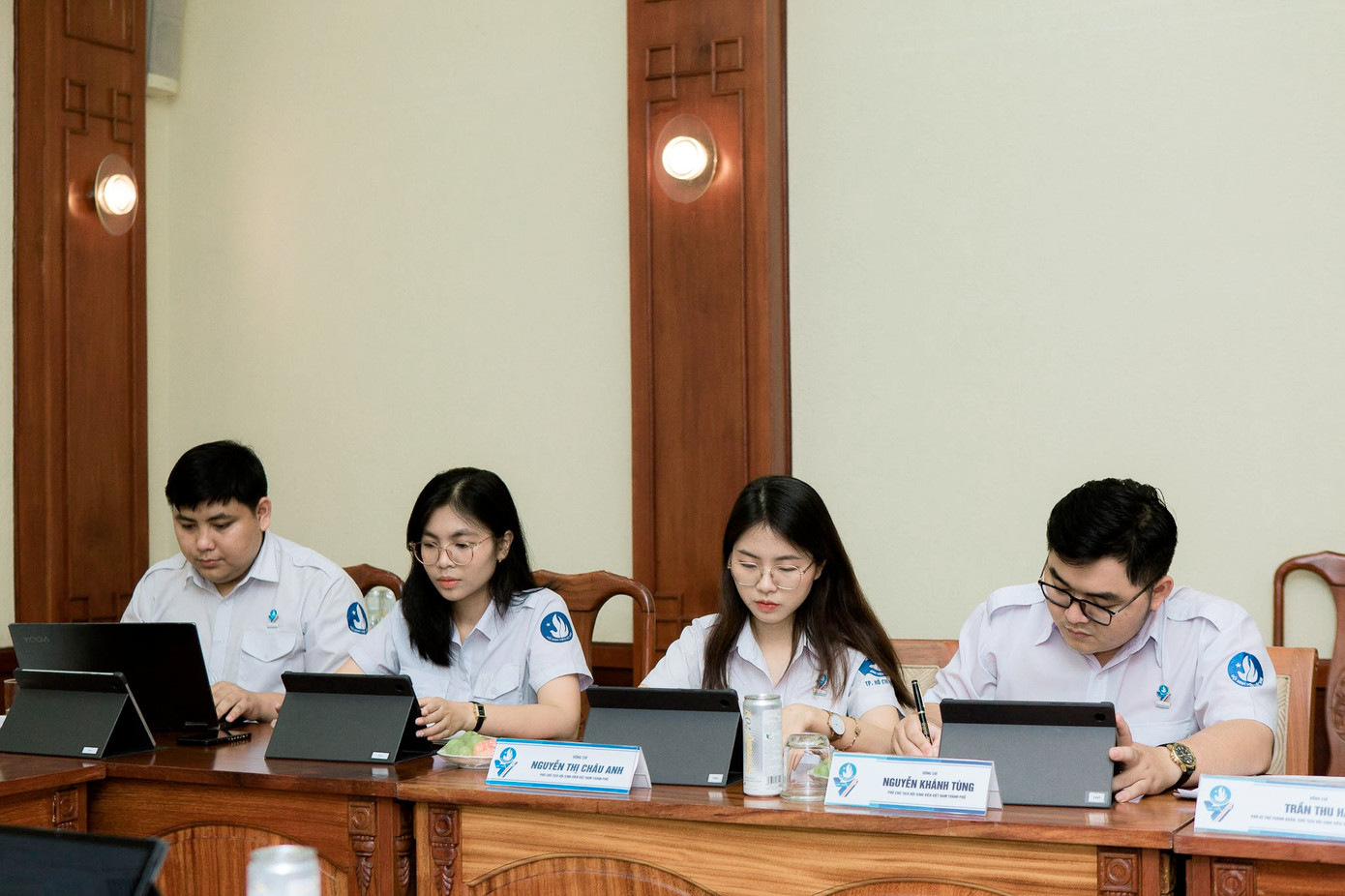 Cùng dự buổi làm việc, có chị Phan Thị Thanh Phương - Thành ủy viên, Bí thư Thành Đoàn; chị Trần Thu Hà - Phó Bí thư Thành Đoàn, Chủ tịch Hội Sinh viên TP. HCM; đại diện Ban Dân vận Thành ủy, các sở, ngành liên quan, các anh chị Ủy viên Ban Thư ký và đại diện Thường trực Hội Sinh viên các trường đại học, học viện, cao đẳng trên địa bàn TP. HCM.
