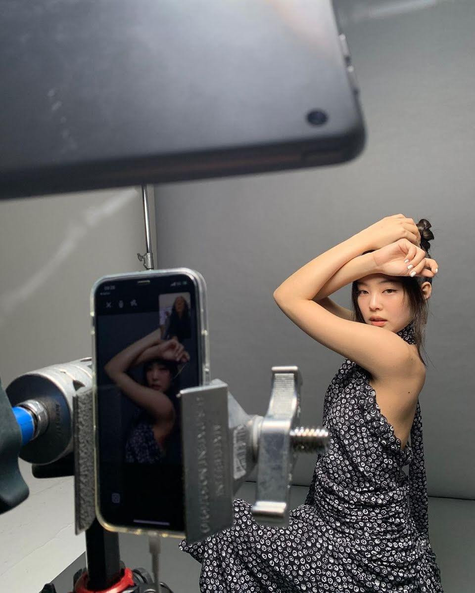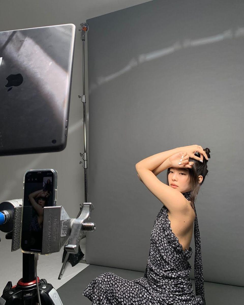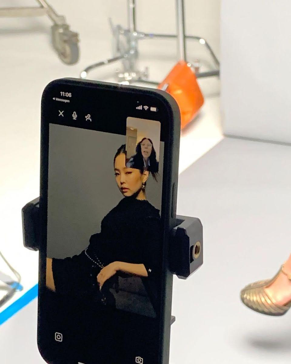 Nhưng sự thực thì Jennie chỉ tạo dáng trước một chiếc máy ảnh iPhone được đặt trên chân máy. Hóa ra nhiếp ảnh gia vẫn ở nước ngoài và chỉ đạo buổi chụp rồi chụp từ xa cho Jennie thông qua cuộc gọi Facetime.