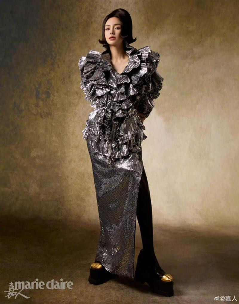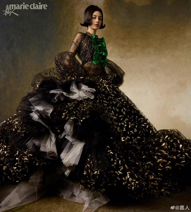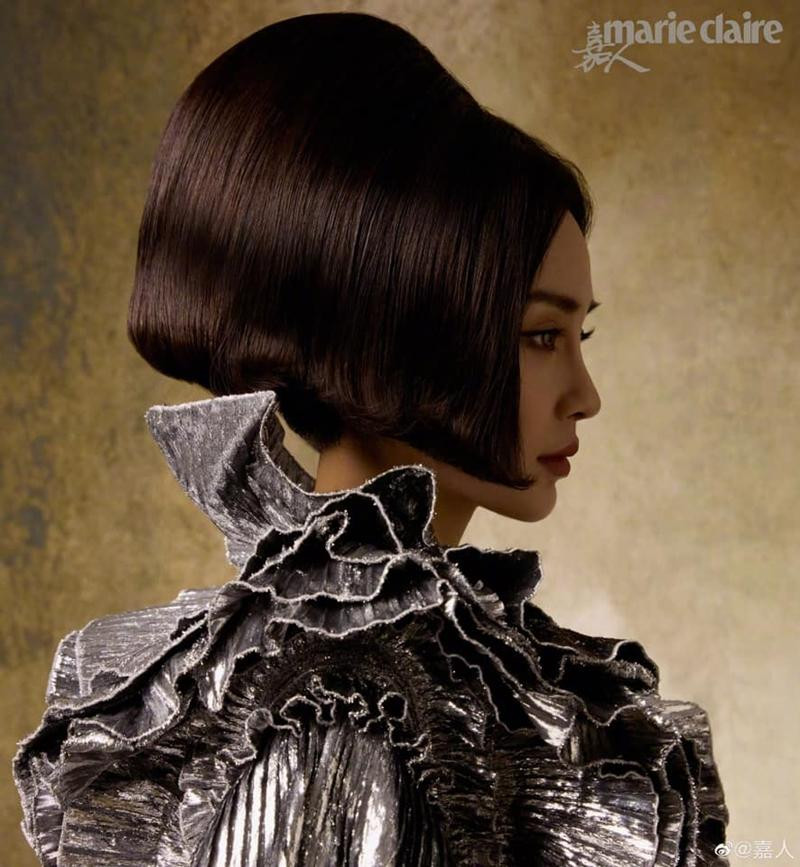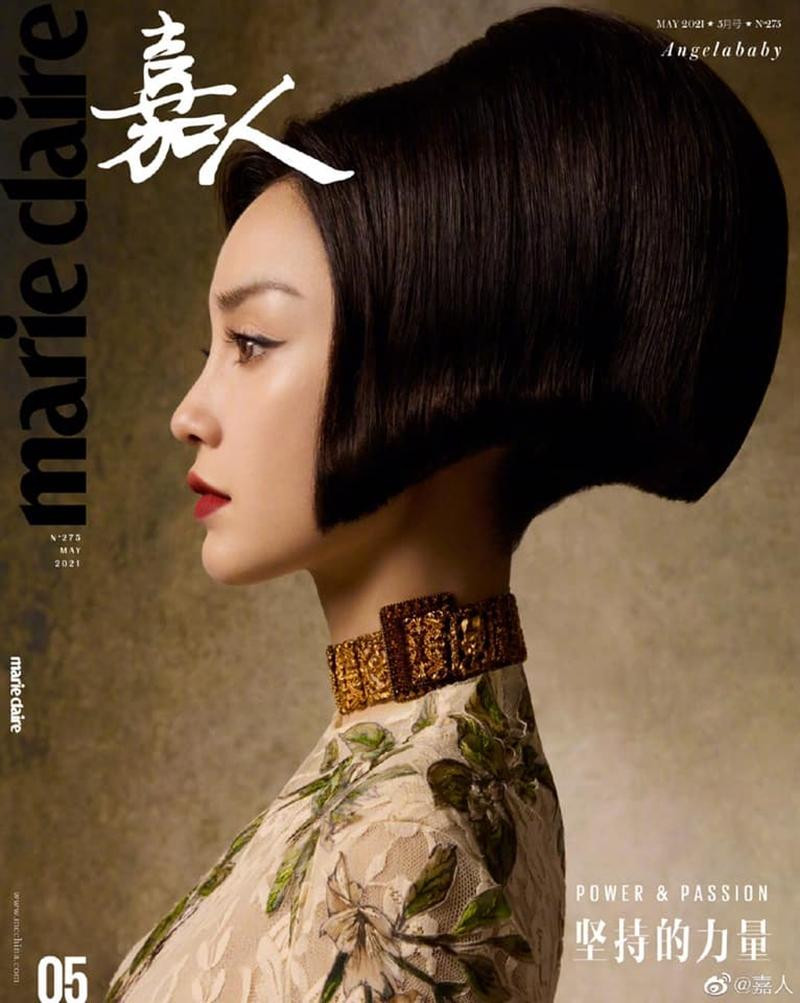 Nếu như tạo hình của Angela Baby với mái tóc tém trên ELLE Trung số tháng 5 đã là một điều bất ngờ, thì tạo hình quý tộc vô cùng ấn tượng trên Marie Claire Trung (cũng là số tháng 5) còn "chất" hơn.