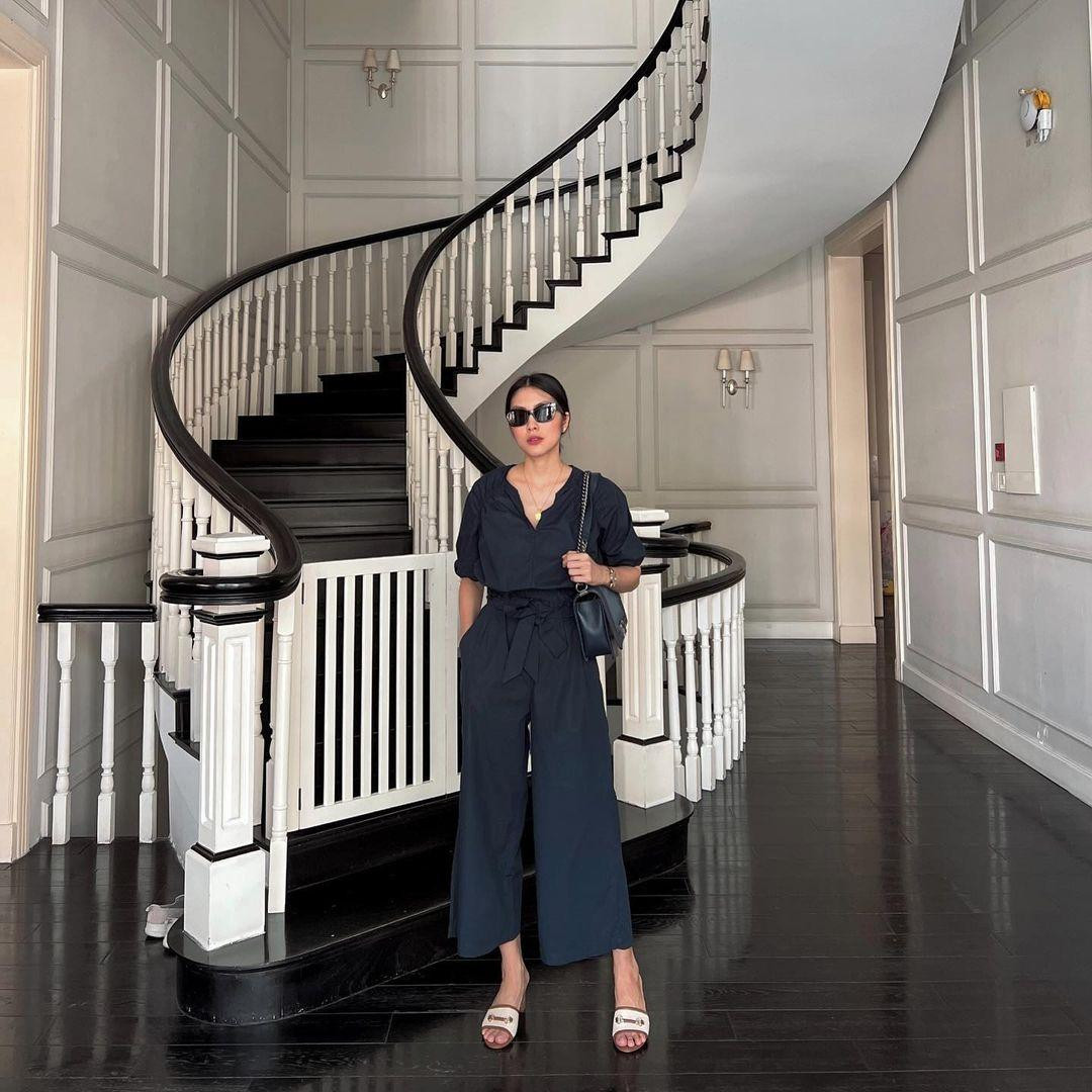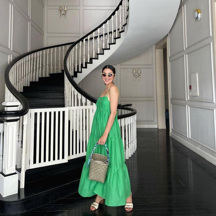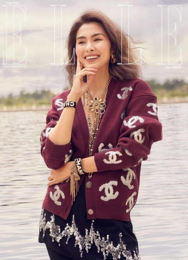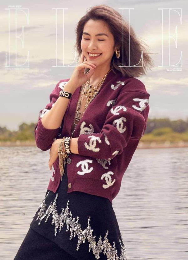 Bà mẹ ba con diện trang phục và trang sức của Chanel, mái tóc ngắn nhuộm màu xám khói sành điệu càng giúp nữ diễn viên mang đậm vẻ thời thượng. Khi không cười, Tăng Thanh Hà có khí chất sắc lạnh của một nữ tổng tài.