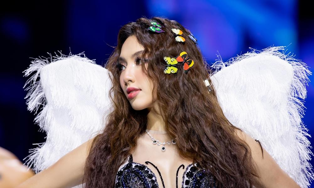 Tối 29/5, Hoa hậu Thùy Tiên xinh đẹp như nữ thần, đảm nhiệm vai trò vedette trong show diễn giới thiệu BST Bướm Hoang của NTK Hoàng Hải.