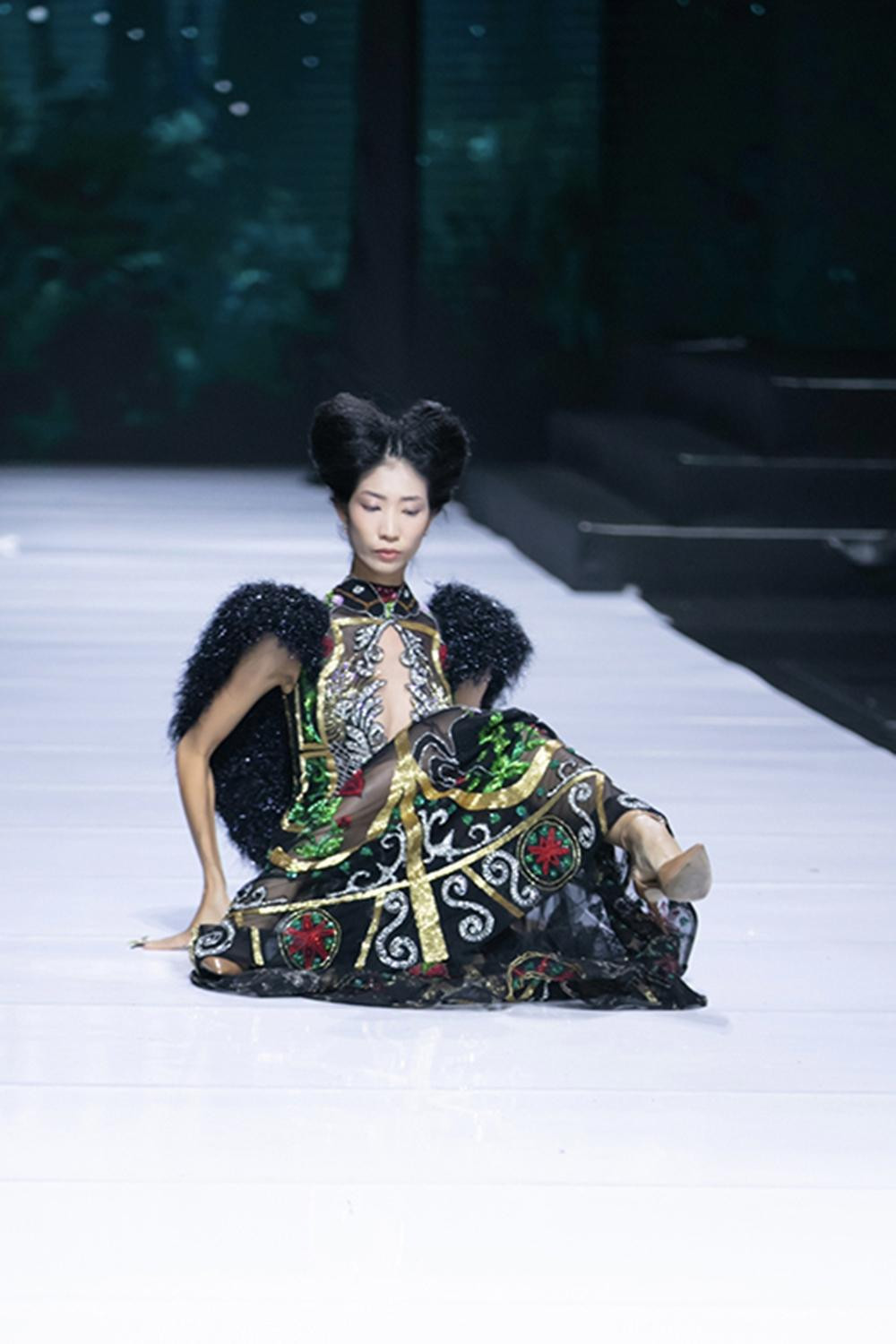 Khi gần hoàn thành phần trình diễn, nàng hậu bất ngờ gặp sự cố. Thùy Tiên đã vấp ngã khuỵu ngang chân và dập đầu gối xuống sàn runway, khiến cho người hâm mộ vô cùng lo lắng cô có thể bị chấn thương.