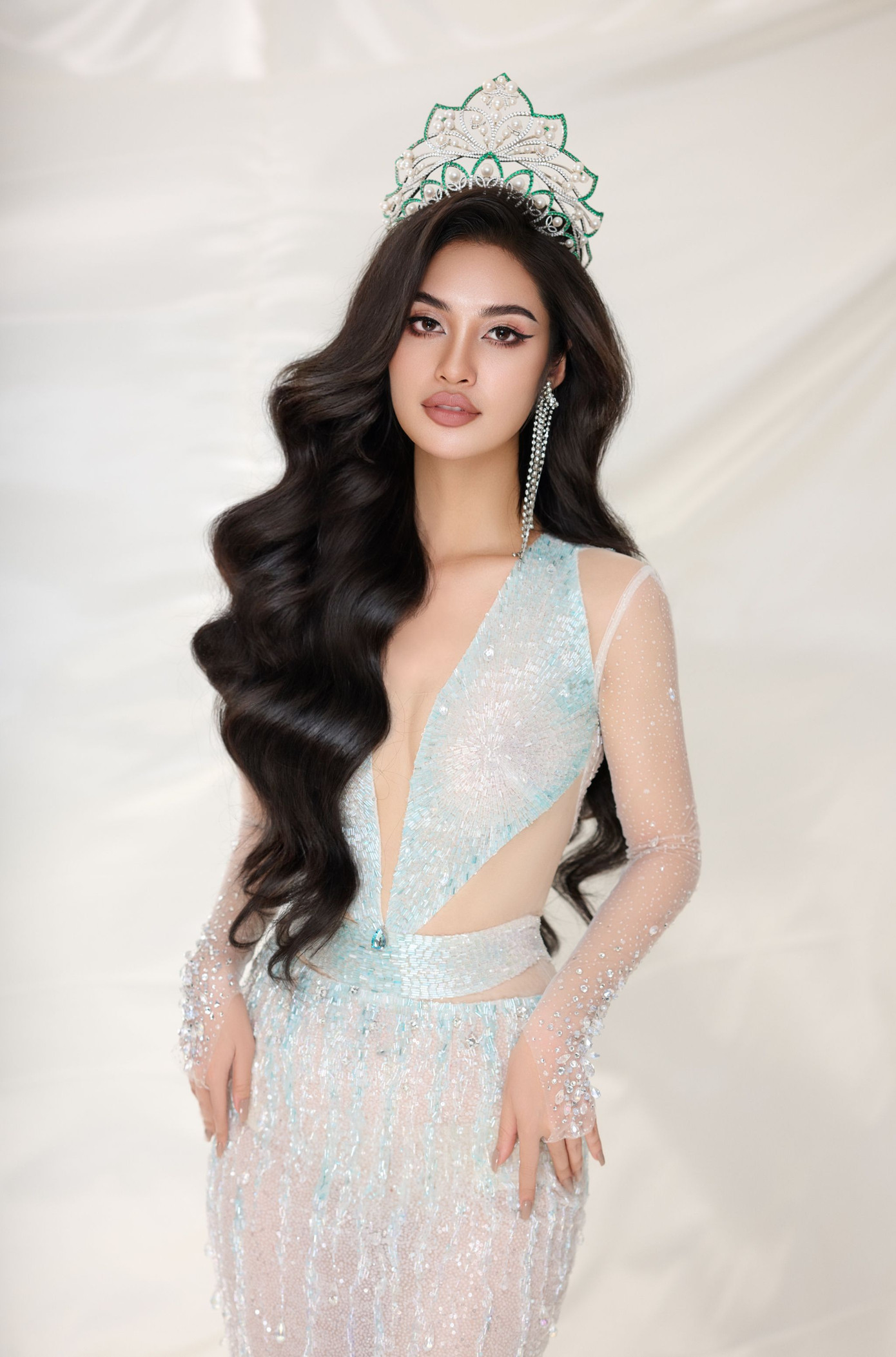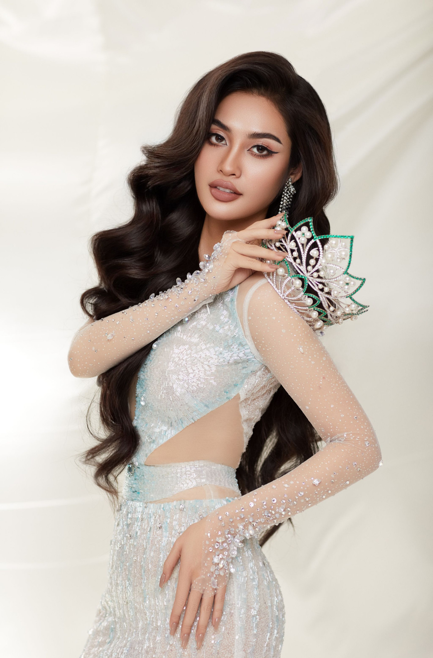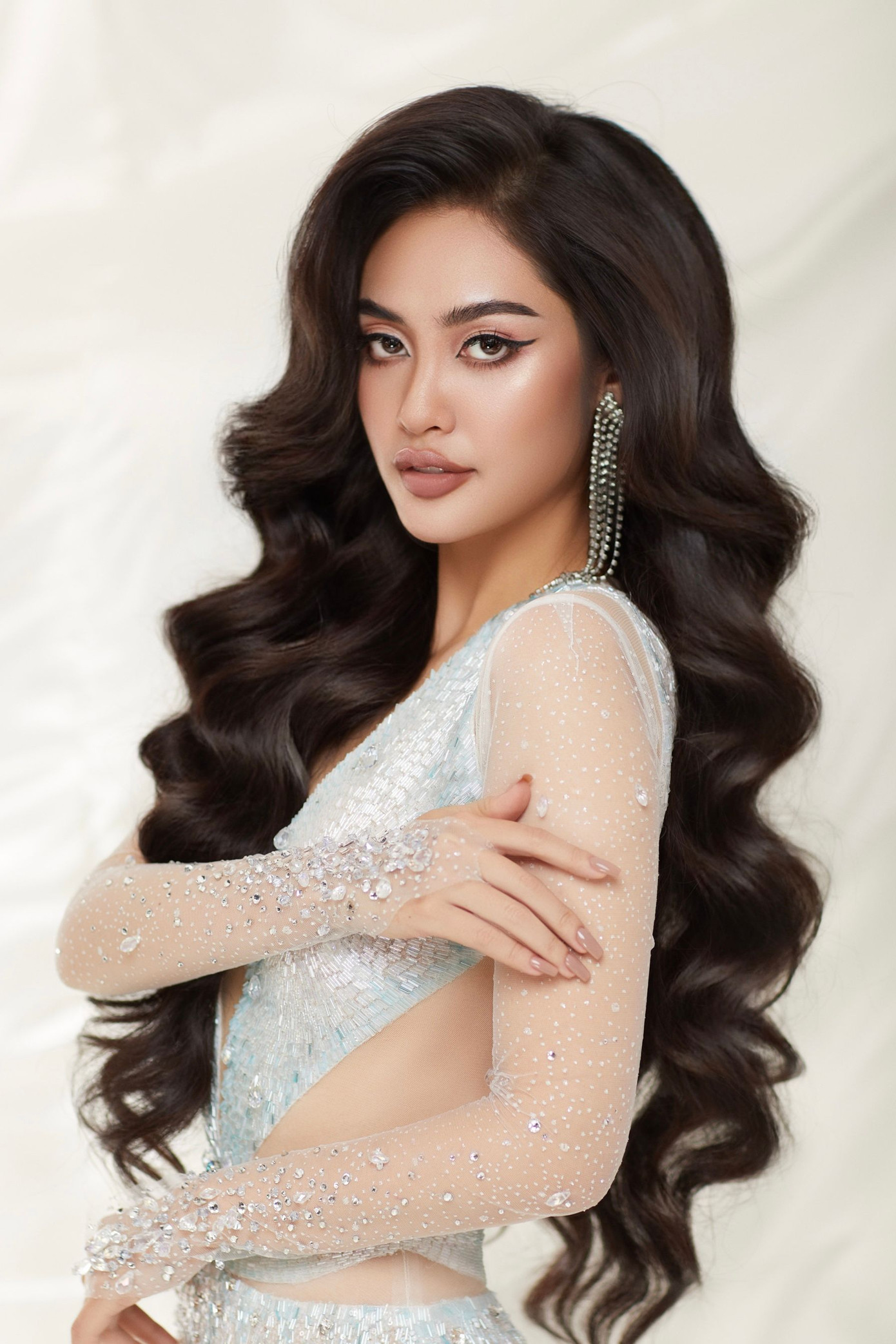 Trong bộ ảnh mới trước khi chinh chiến quốc tế, Nông Thúy Hằng đã khoe nhan sắc kiêu sa, với vương miện Hoa hậu Các dân tộc Việt Nam 2022 có trị giá 3 tỷ đồng. Trong bộ ảnh này, cô diện thiết kế dạ hội đính kết cầu kỳ với những đường cut out táo bạo, khoe vòng eo săn chắc và vóc dáng gợi cảm.