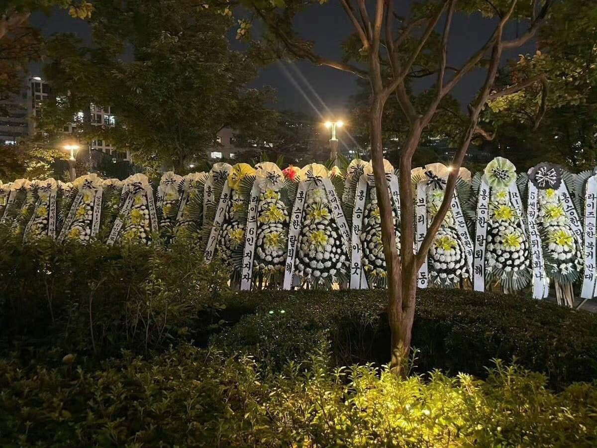 Không chỉ fan Hàn mà cả người hâm mộ các nước khác cũng gửi vòng hoa tới trụ sở SM. Trong ngày 12/10, ước tính có khoảng 1.000 vòng hoa tang bị gửi trước cổng SM yêu cầu Seunghan rời nhóm.