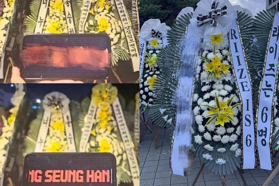 Việc gửi vòng hoa biểu tình là hình thức phổ biến ở Hàn. Tuy nhiên, cư dân mạng Hàn phát hiện có vòng hoa gửi tới SM có ghi cụm từ "yên nghỉ nhé", nhắm vào Seunghan. Hành vi này được cho là đã đi quá giới hạn và mang tính công kích kém duyên, phản cảm.