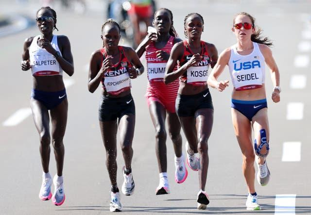 Về trước Molly Seidel là hai chân chạy người Kenya. Peres Jepchirchir, một VĐV thường thi đấu ở nội dung bán marathon (21,097km) với 2 lần vô địch thế giới 2016 và 2018, giành HCV với thời gian 2 giờ 27 phút 20 giây.