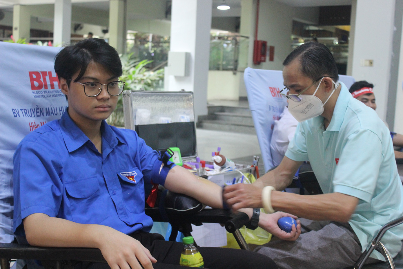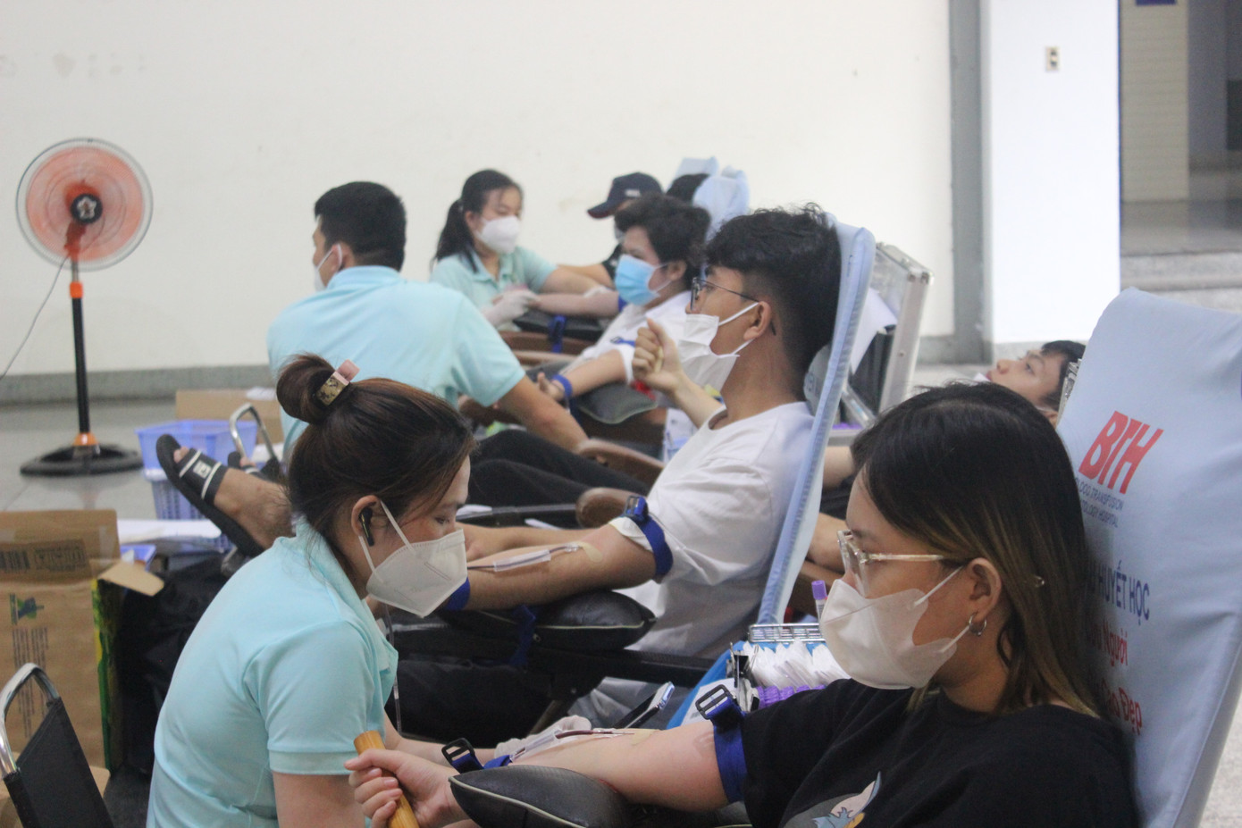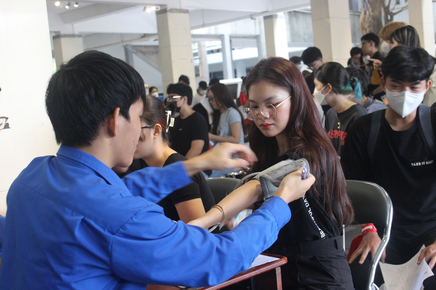 | Vừa tham gia trong vai trò tình nguyện viên, nhiều bạn sinh viên cũng tham gia hiến máu tại chương trình. |