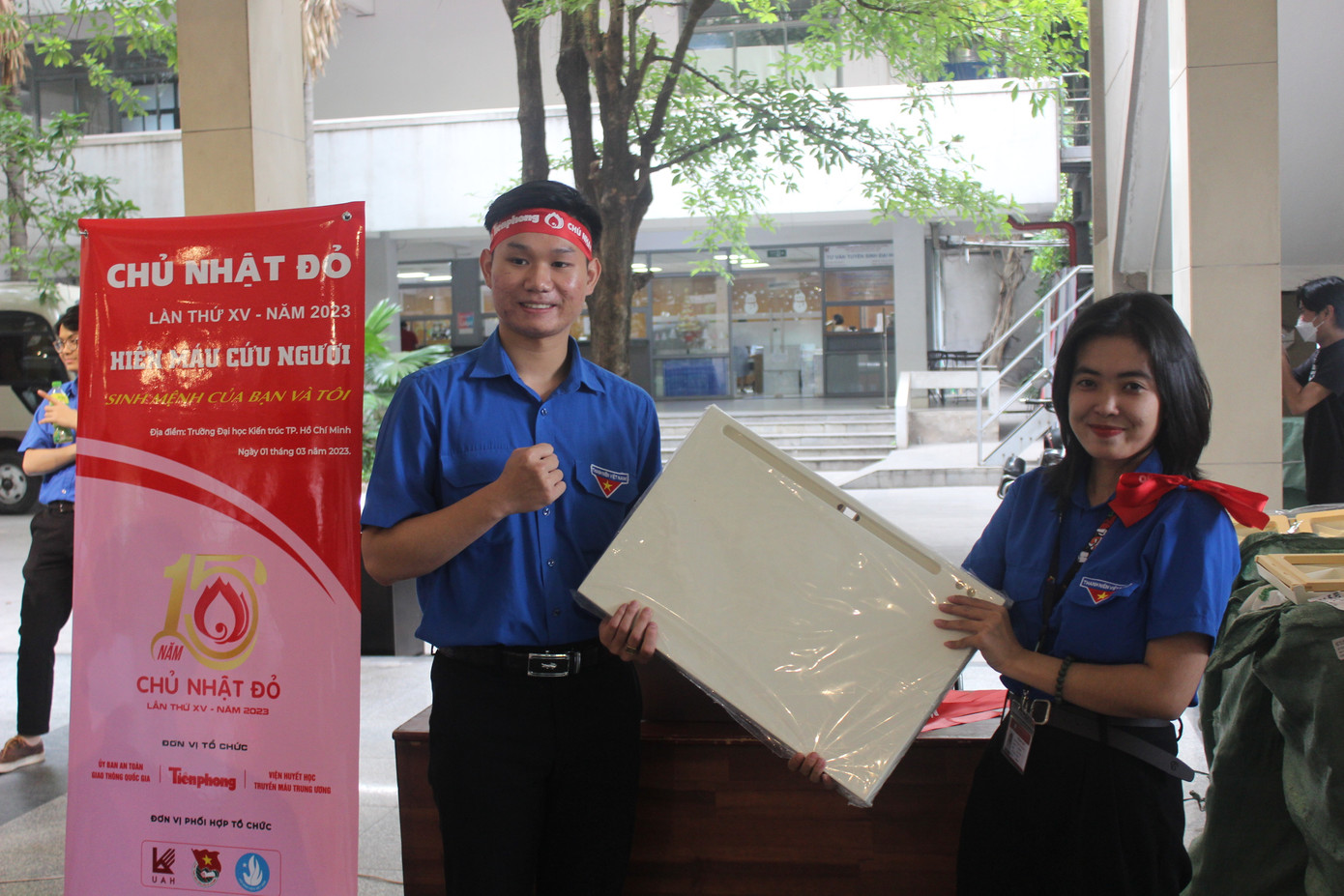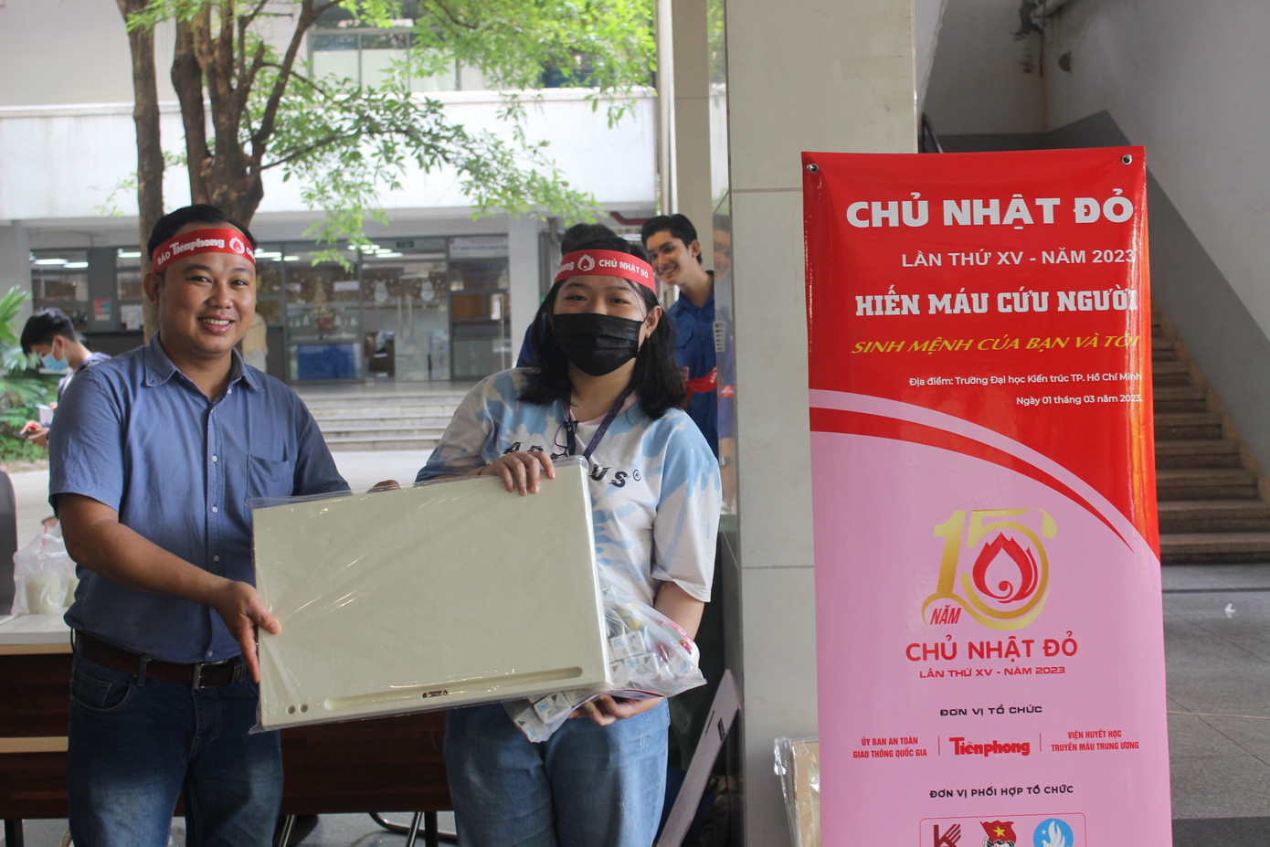 TPO - Chương trình hiến máu Chủ nhật Đỏ do báo Tiền Phong phối hợp Bệnh viện truyền máu huyết học TPHCM và Đoàn Thanh niên – Hội Sinh viên trường ĐH Kiến trúc TPHCM tổ chức đã diễn ra sáng 1/3 tại trường ĐH Kiến trúc TPHCM.