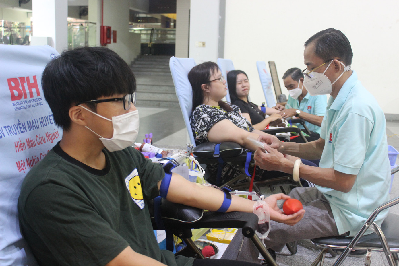 | Ngoài sinh viên tham gia hiến máu, nhiều giảng viên, cán bộ, công nhân viên Trường ĐH Kiến trúc TPHCM cũng tham gia hiến máu trong ngày hội. |