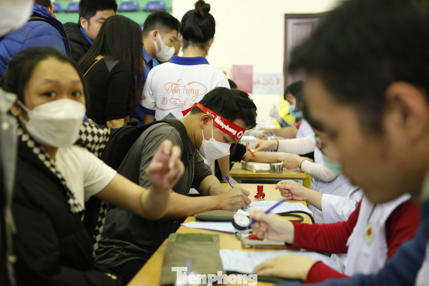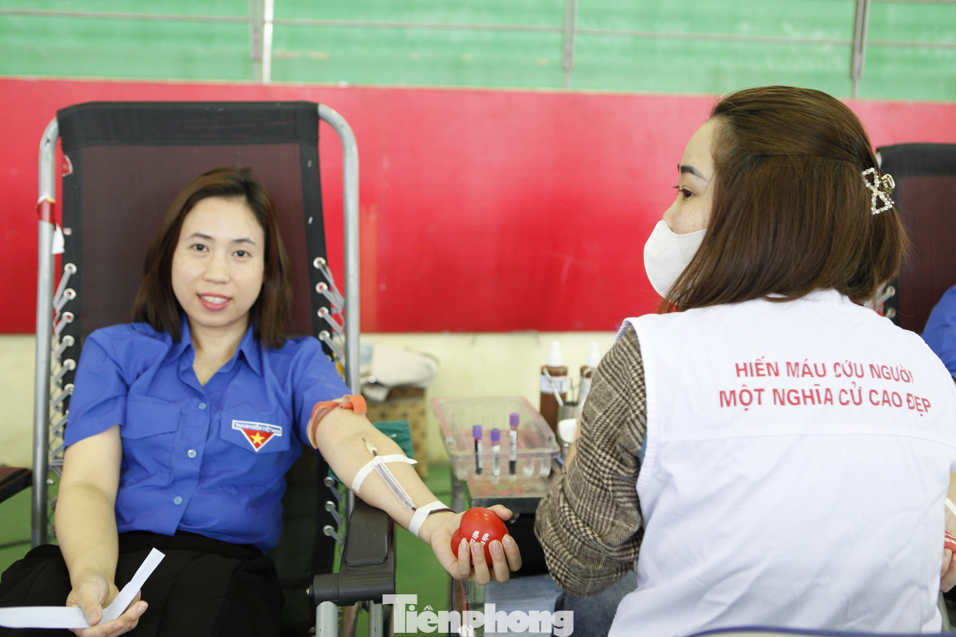 | Các bạn sinh viên hào hứng đi hiến máu. Nhiều bạn lần đầu đi hiến cảm thấy hạnh phúc khi được trao giọt máu của mình cứu sống người khác. |