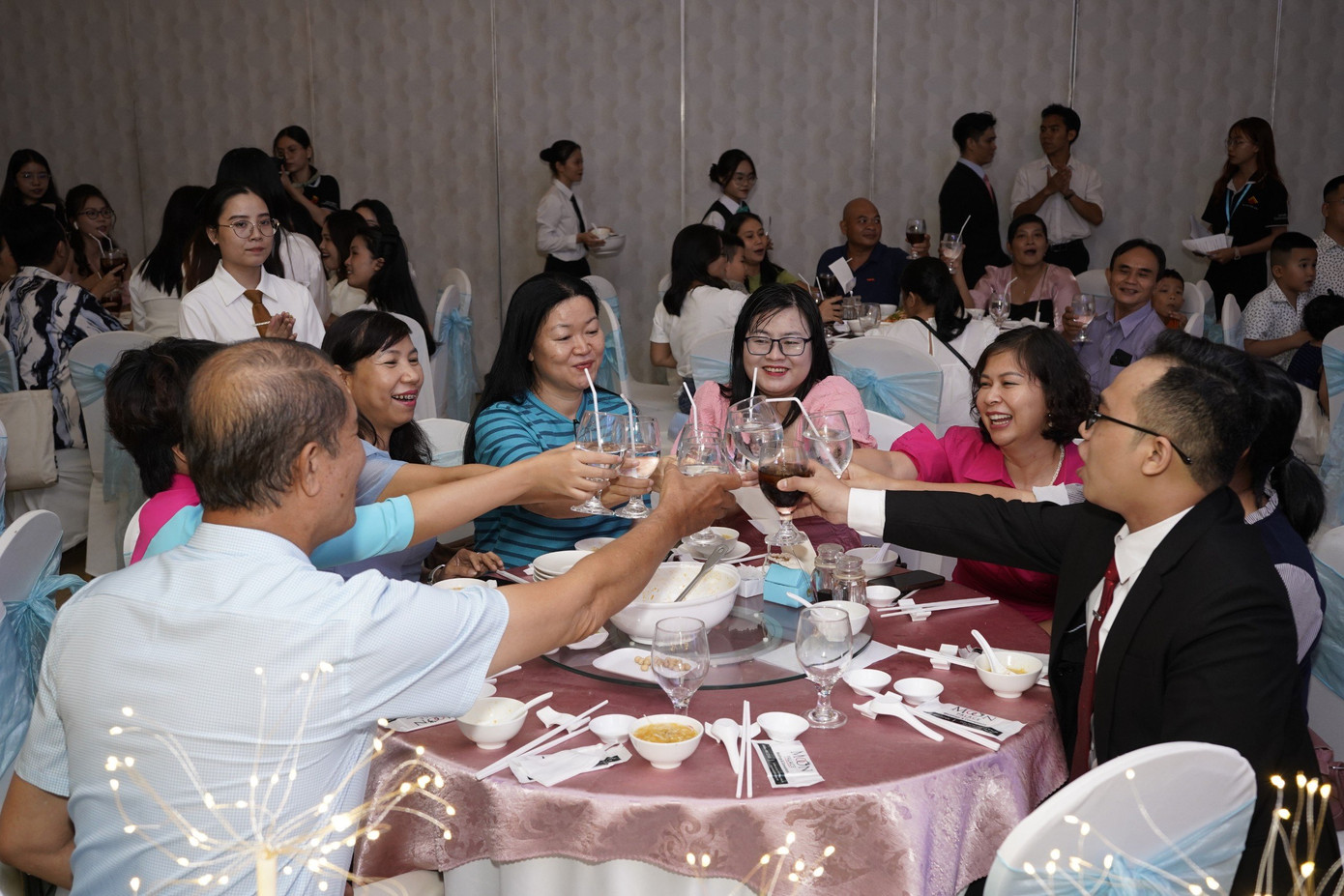 | Khách mời chủ yếu là người thân cô dâu chú rể, giảng viên, sinh viên khoa Báo chí và Truyền thông. |