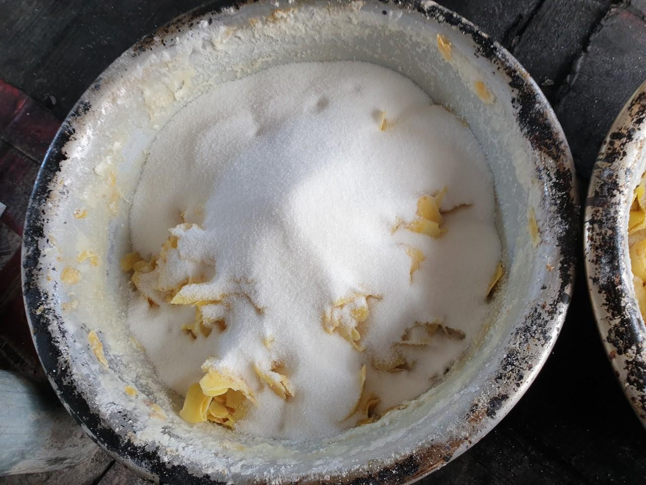 | Sau khi đã để ráo nước, gừng luộc được trộn với đường trắng theo tỷ lệ 1:1 (1kg đường trộn 1kg gừng) để ngấm khoảng 1 giờ đồng hồ. Sau đó, nguyên liệu này được cho vào chảo rộng đặt lên lò rim lửa than liu riu. Người rim mứt phải thường xuyên canh chừng lửa để mứt chín đều, không bị cháy khét, vón cục hay bị dẻo. |