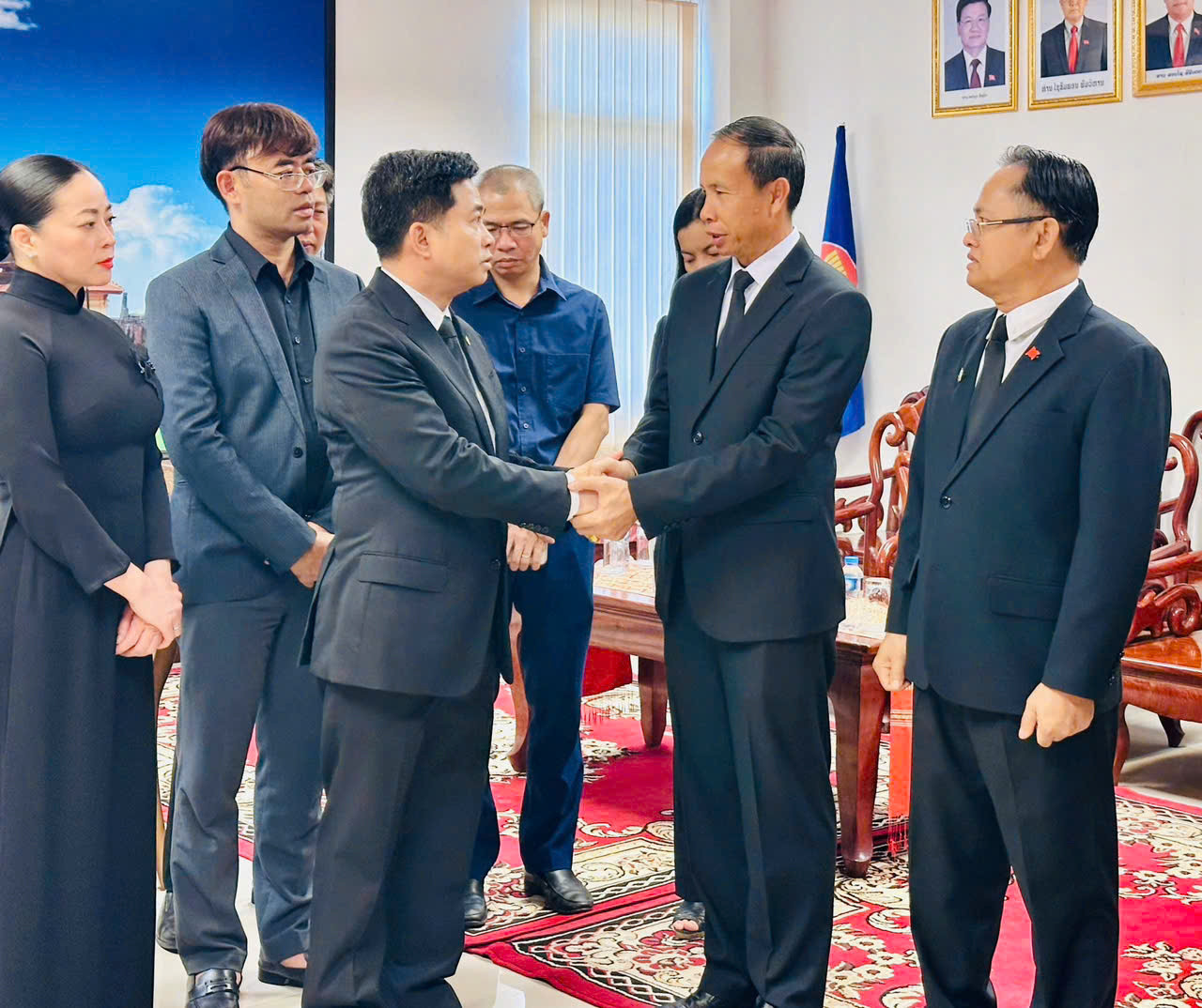 Cùng ngày, đoàn đại biểu Tỉnh ủy - HĐND - UBND - Ủy ban MTTQ Việt Nam các địa phương phía Nam đã đến Tổng Lãnh sự quán Lào tại TPHCM viếng, viết sổ tang tưởng nhớ đồng chí Đại tướng Khamtay Siphandone.