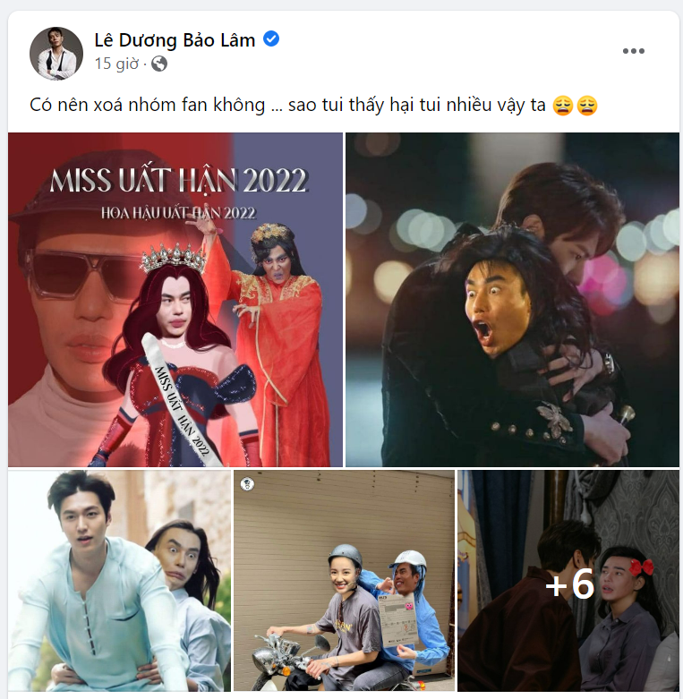 Mới đây, trên trang cá nhân, Lê Dương Bảo Lâm bất ngờ đăng đàn dọa sẽ "xóa sổ" FC có đông đảo thành viên của mình vì "bị hại" quá nhiều. Cụ thể, nam diễn viên đã chia sẻ các bức ảnh được fan photoshop để anh xuất hiện chung khung hình với nam diễn viên điển trai xứ Hàn - Lee Min Ho kèm dòng trạng thái hài hước: "Có nên xoá nhóm fan không... sao tôi thấy hại tôi nhiều vậy ta".