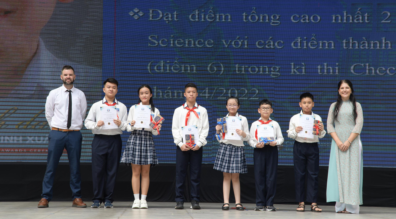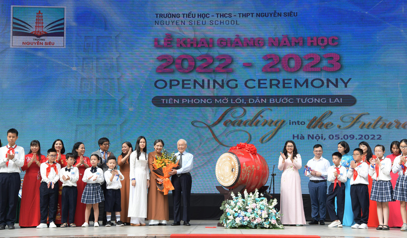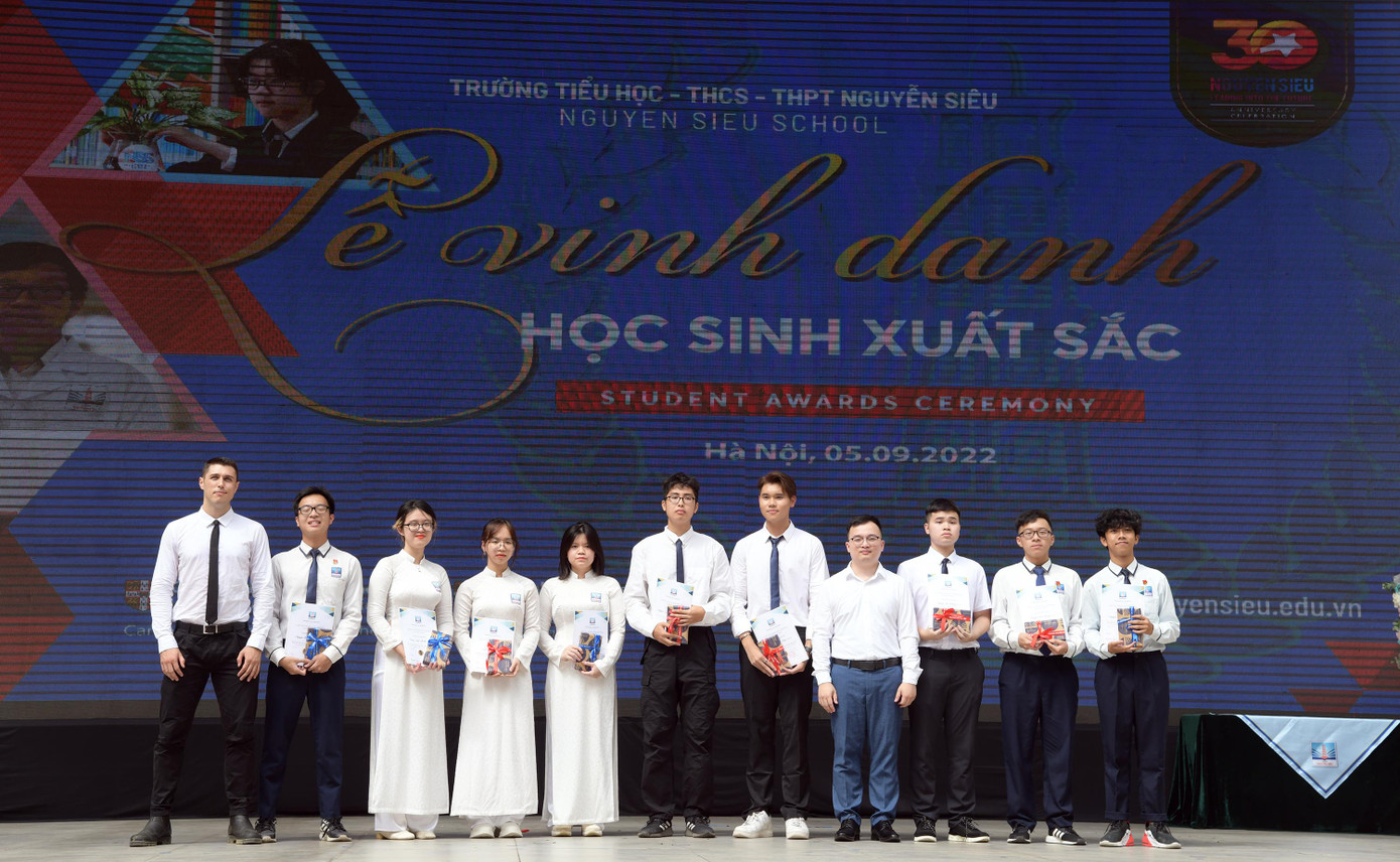 Lễ khai giảng cũng vinh danh học sinh giỏi xuất sắc, gương mẫu toàn diện đạt Học bổng Nguyễn Siêu, đạt thành tích cao trong kỳ thi THPT Quốc gia, đạt 100% điểm A/A* trong các kì thi Cambridge quốc tế năm 2022 là minh chứng rõ nét cho hiệu quả đầu ra của chương trình giáo dục tích hợp, mô hình đồng dạy, mô hình Anh ngữ học thuật (AE) đầy tính tiên phong và ưu việt của trường Nguyễn Siêu.