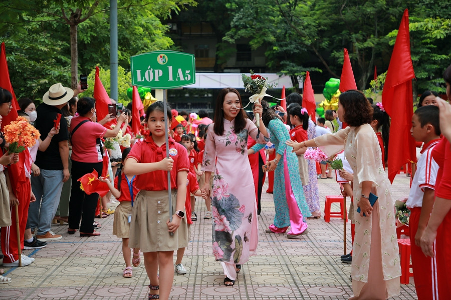 Đón các "mầm non" nhập trường đều là những cô giáo có kinh nghiệm lâu năm. Nếu như cô Đỗ Thúy Bình - Chủ nhiệm lớp 1A1 là giáo viên dạy giỏi cấp Quận, với 23 năm kinh nghiệm trong công tác chủ nhiệm và giảng dạy cấp tiểu học; thì cô Phạm Hương Giang - Tổ trưởng chuyên môn của khối 1 là cô giáo có bề dày kinh nghiệm lâu năm trong rèn chữ và rèn nếp cho học sinh lớp 1.