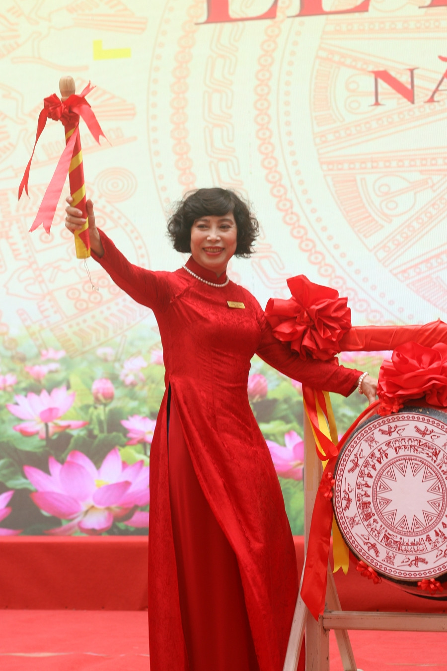 Trong niềm hân hoan tựu trường, cô Hiệu trưởng Lê Thị Anh Thư đã đánh những hồi trống khai giảng giòn giã, báo hiệu một năm học mới đầy hứng khởi.