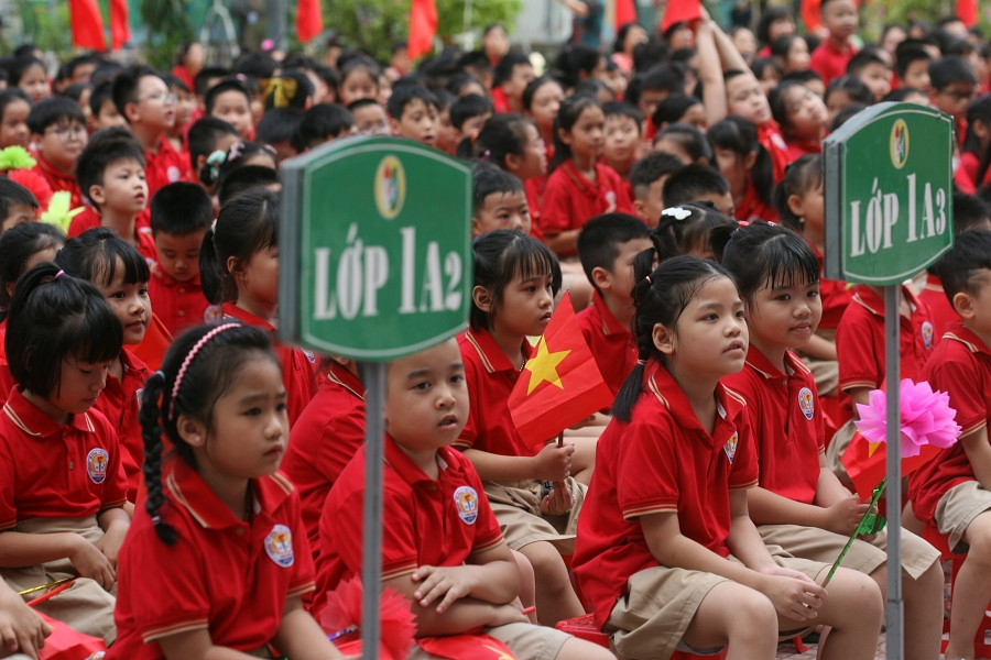 Năm nay, trường Tiểu học Thành Công A đón 180 em học sinh lớp 1. Các “tân binh” xúng xính trong bộ đồng phục mới tinh tươm, được các cô giáo dẫn vào các lớp từ lớp 1A1 đến 1A6 trong sự chào đón của các anh chị khối lớp trên.