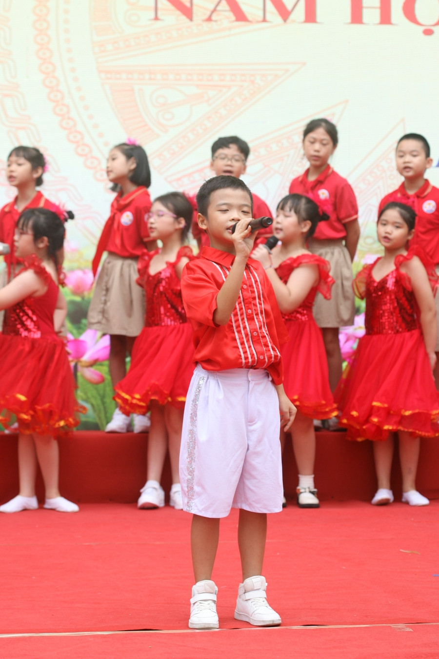 | Bạn Nguyễn Duy Anh - học sinh lớp 3A4 trình diễn trong Lễ khai giảng. |