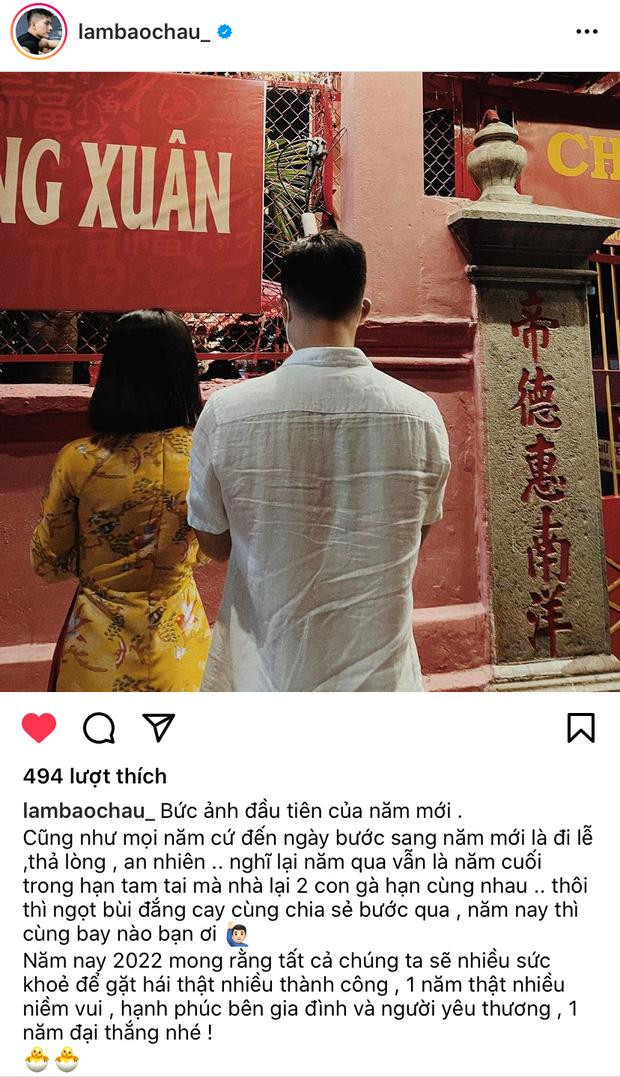 Năm nay 2022 mong rằng tất cả chúng ta thật nhiều sức khỏe để gặt hái thật nhiều thành công, một năm thật nhiều niềm vui, hạnh phúc bên gia đình và người yêu thương, một năm đại thắng nhé", Lâm Bảo Châu viết.