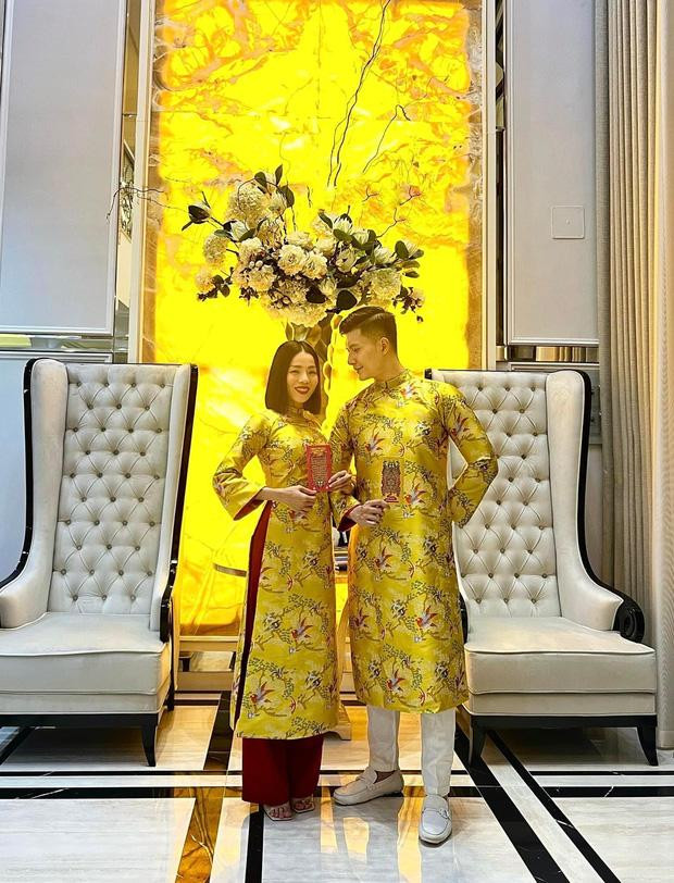 Cặp đôi diện áo dài màu vàng trong biệt thự sang trọng và trao nhau ánh mắt “tình bể bình”. Ngoài ra, Giọng ca Hãy trả lời em còn gây chú ý với clip tặng một người cháu trong gia đình phong bao lì xì trải dài.