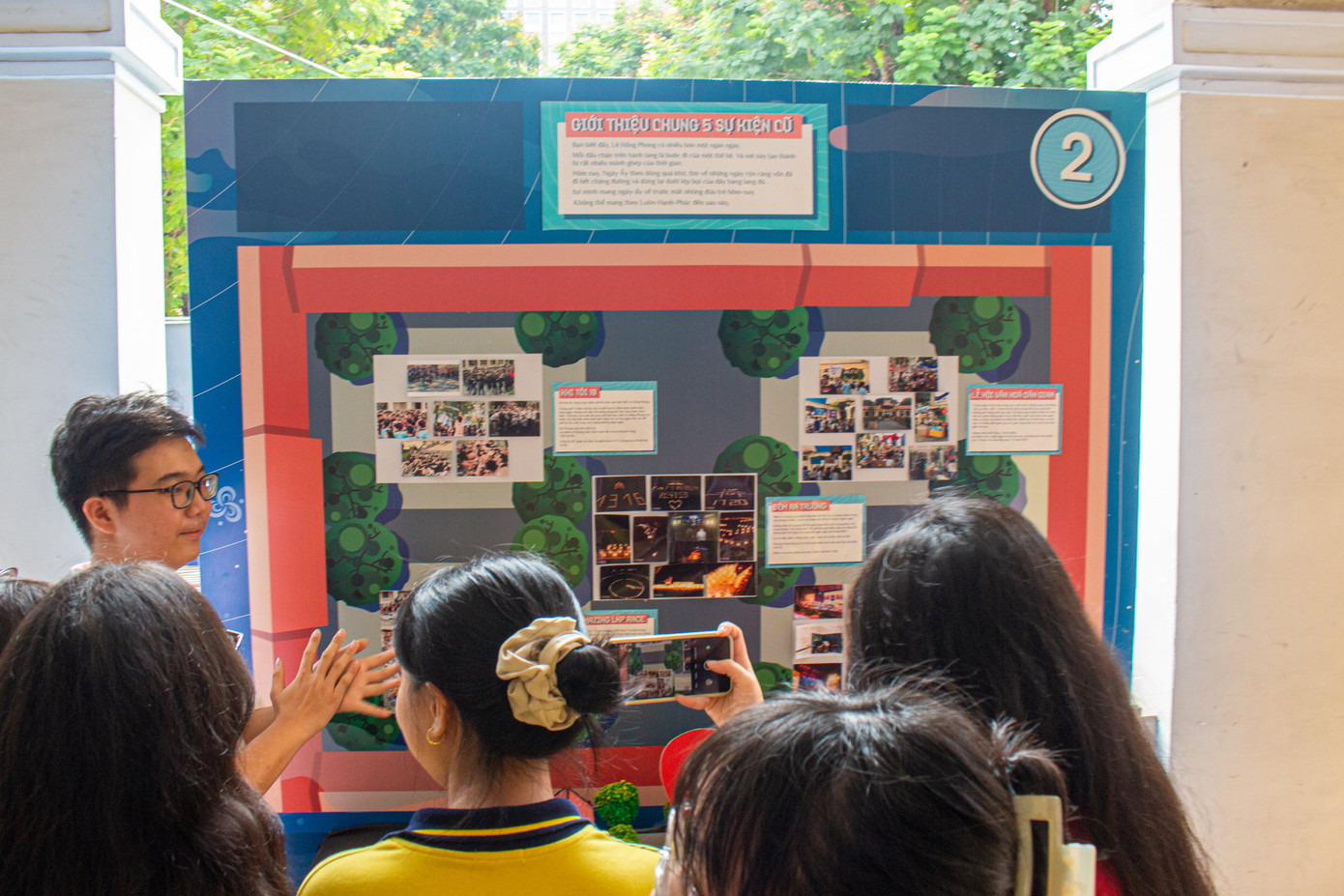 Bạn Trần Minh Phương Vy (lớp 12CA3, thành viên chương trình Truyền thống khối 12) tự hào về quá trình chuẩn bị triển lãm: “Dù tụi mình cuối cấp, ai cũng bận ôn thi nhưng vẫn thu xếp để sao cho triển lãm sang - xịn - mịn nhất. Mình nhớ nhất những khi viết caption vội bằng điện thoại trên xe đưa đón từ trường về nhà, trong lúc ăn cơm nữa. Và lúc thấy thành quả, mình chỉ biết “ồ quao” vì đẹp ngoài sức tưởng tượng luôn”.