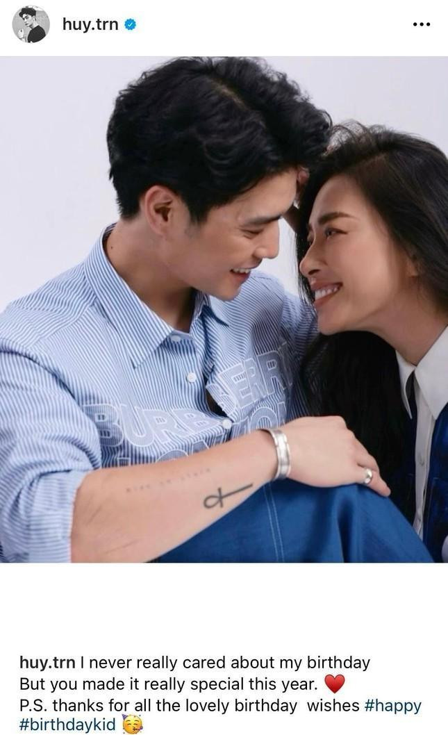 Trong dịp sinh nhật của mình, Huy Trần cũng khiến khán giả "ăn kẹo" ngọt đến sâu răng khi đăng hình ảnh cả hai tình tứ bên nhau lên Instagram kèm dòng trạng thái: “I never really cared about my birthday. But you made it really special this year”.