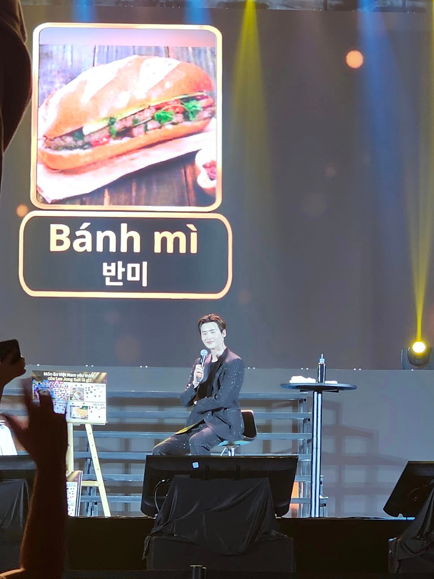 Lee Jong Suk còn "đốn gục" trái tim fan Việt khi trổ tài nói tiếng Việt "Anh thích em" và khen fan "dễ thương". Trong buổi fan meeting, anh bật mí món ăn Việt yêu thích của mình chính là bánh mì.