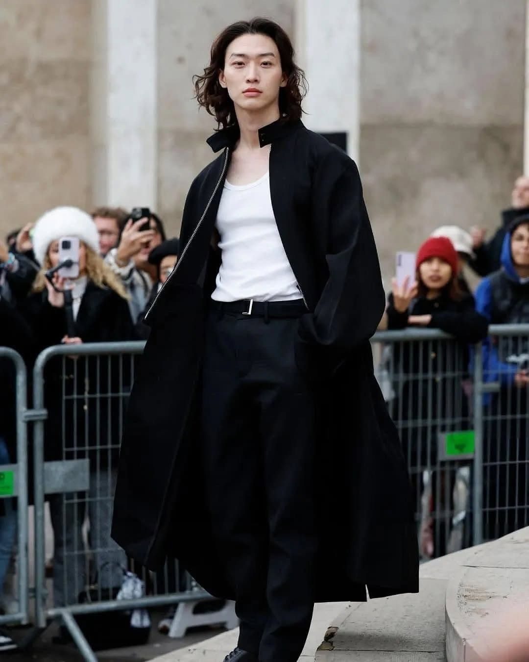 Kiểu tóc này giúp tôn lên visual "tuyệt đối điện ảnh" của Lee Sang Heon trong chuỗi sự kiện thuộc Men's Fashion Week hồi cuối tháng 1. Nam diễn viên được nhận xét mang khí chất thời trang riêng biệt khi xuất hiện tại show diễn của Jacquemus, Yoji Yamamoto, sacai...