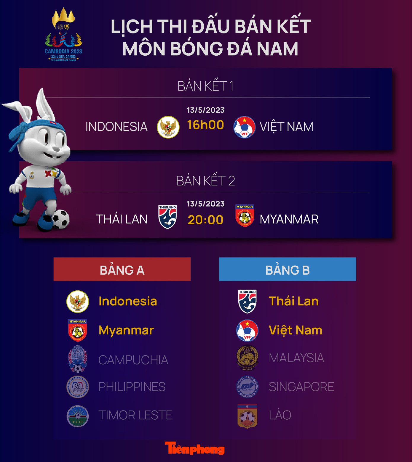 Trong khi đó, bảng A gồm các đội tuyển U22 Campuchia, Indonesia, Myanmar, Philippines và Timor Leste.