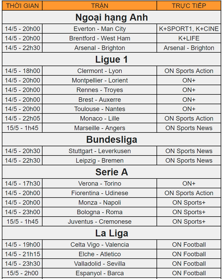 Giải Ngoại hạng Anh cũng hấp dẫn với cuộc đua vô địch. Man City thi đấu lúc 20:00 gặp Everton, trong khi Arsenal được dự đoán sẽ có trận đấu khó khăn trước Brighton.