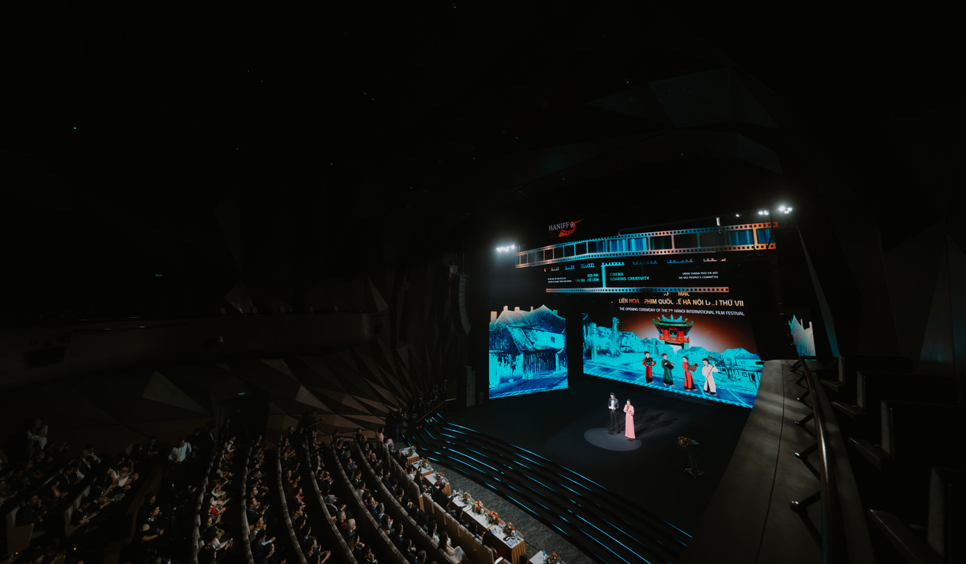 Một trong những điểm nhấn đặc sắc tại HANIFF 2024 là phần mở màn của dàn nhạc Việt Nam. Những nhạc cụ truyền thống đàn bầu, sáo trúc… quen thuộc giờ đây được phối theo phong cách hiện đại mang đến trải nghiệm mới lạ mà vẫn đậm đà bản sắc dân tộc.